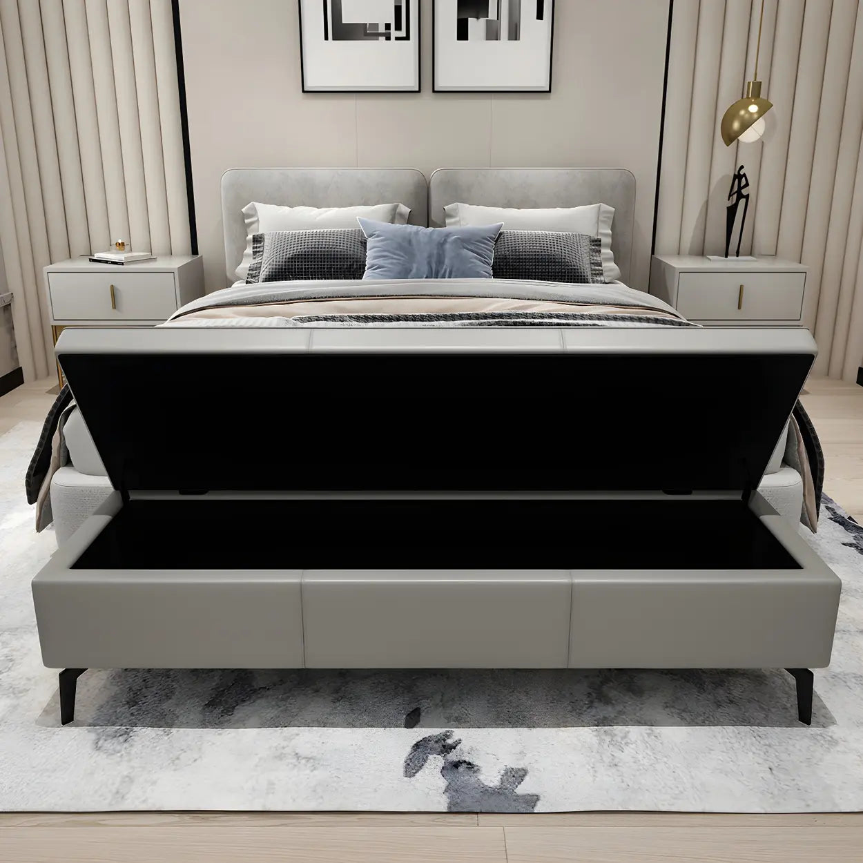 This modern bench is a perfect blend of practicality and design, made from high-quality fabrics for a soft and comfortable touch. Whether placed in the bedroom, living room, or entryway, it can add storage space and decorative highlights to your home. Smart storage features make it easy to store daily miscellaneous items and keep the space tidy.