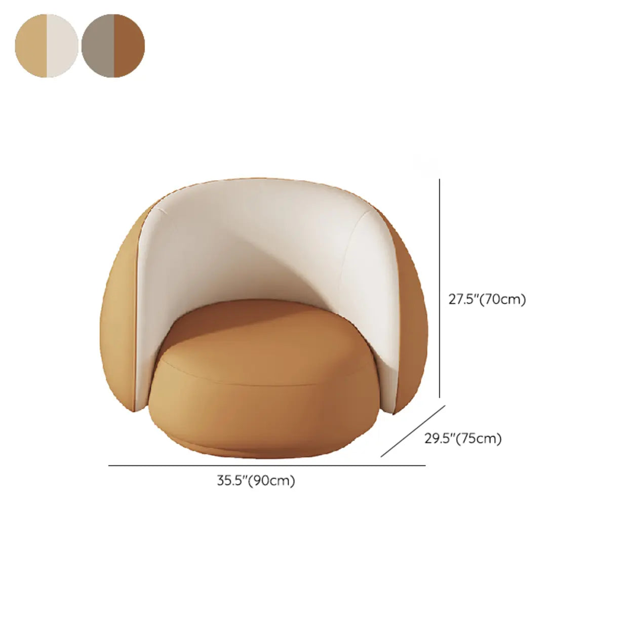 Light Gray-Khaki Water Resistant Leather Curved Sofa - Leathaire / Light Gray/ Khaki / 35.5"L x 29.5"W x 27.5"H is backordered and will ship as soon as it is back in stock.