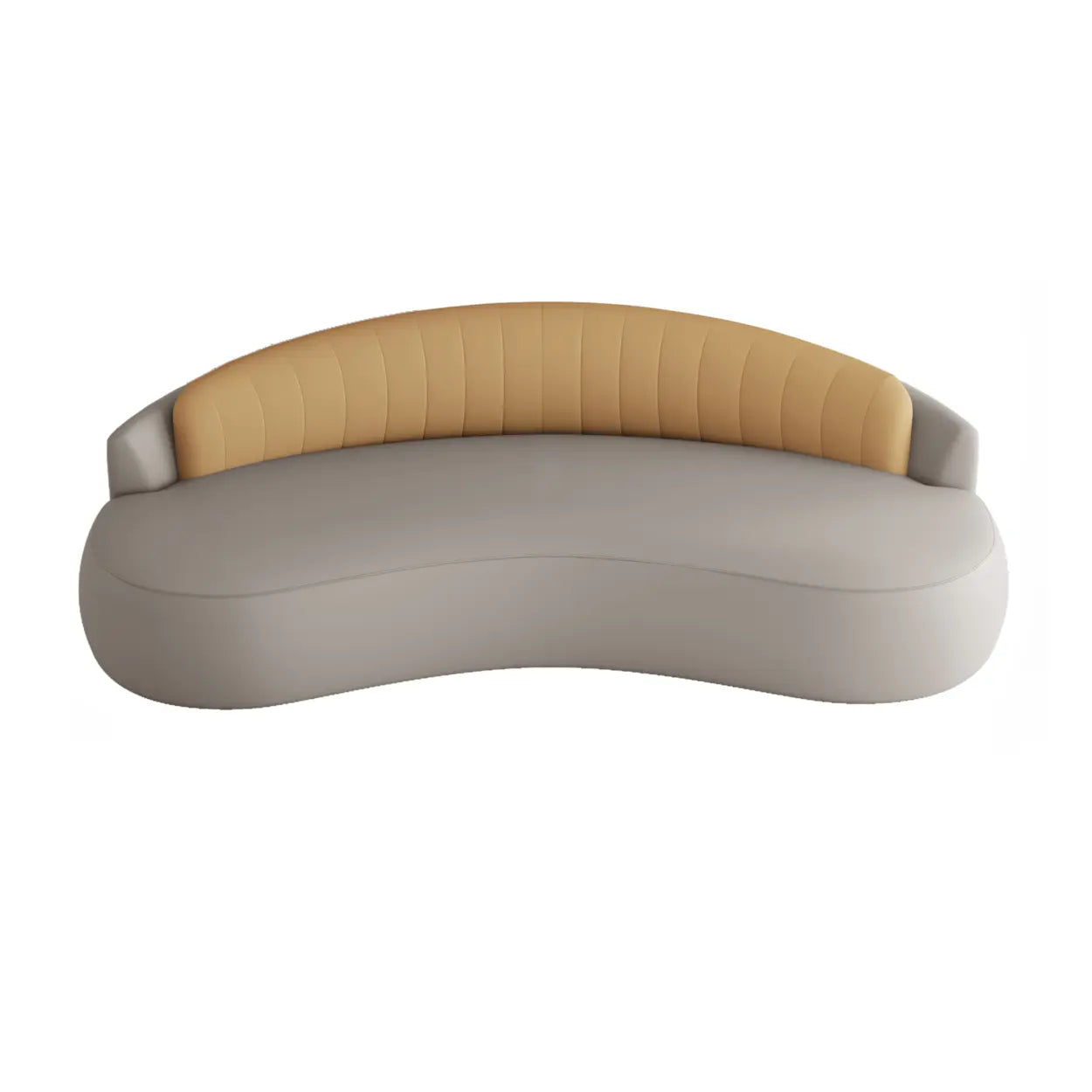 Light Gray-Khaki Water Resistant Leather Curved Sofa