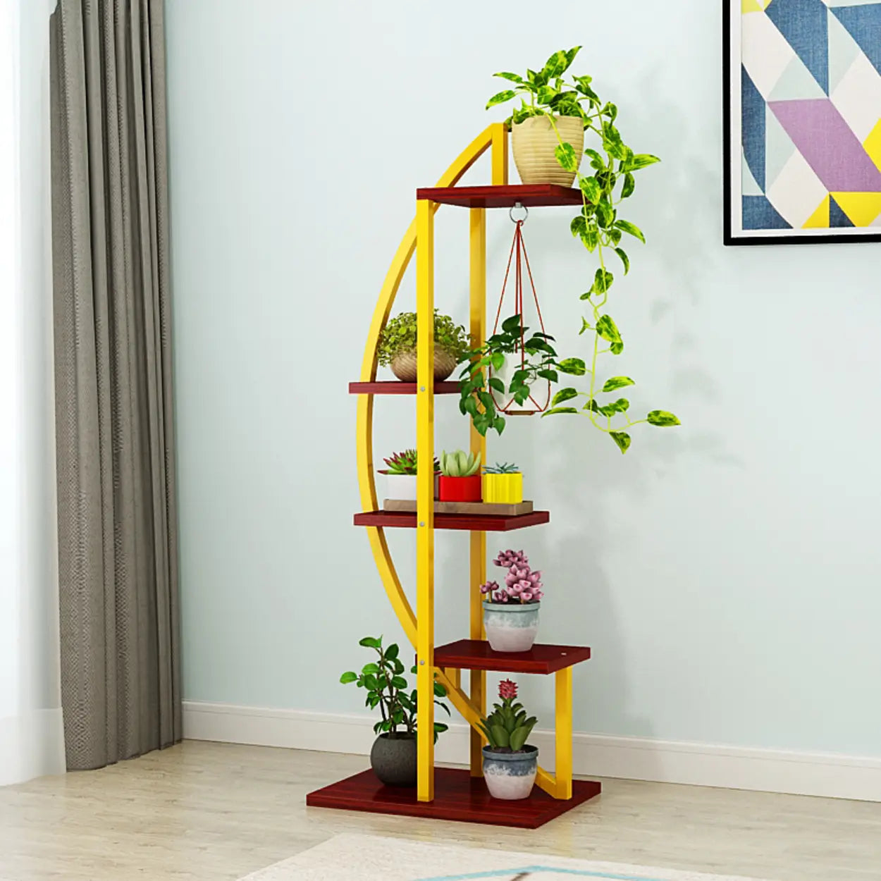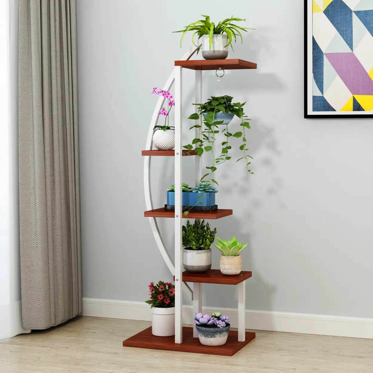 Living Room 4 Tiers Curved Wooden Storage Plant Stand