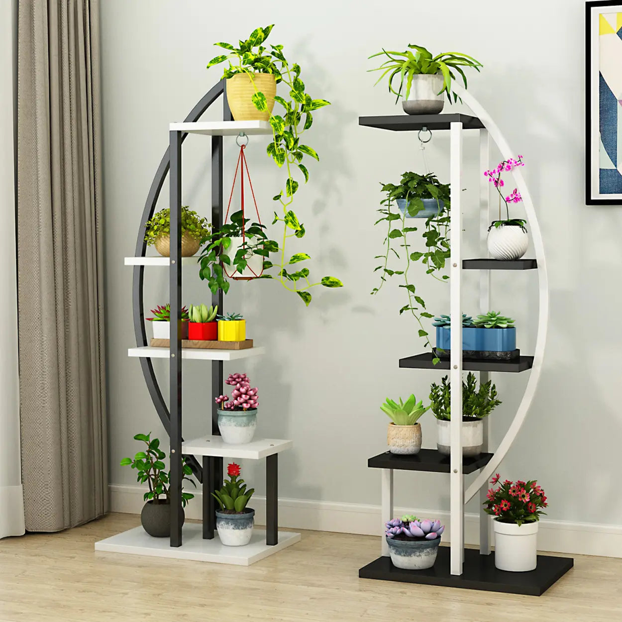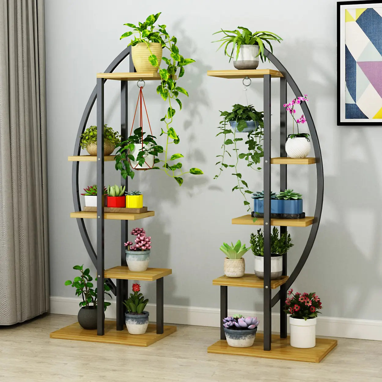 This modern flower stand is the ideal choice for every green plant lover. Its unique oval design not only saves space but also increases the beauty of interior decoration. The sturdy metal structure ensures sufficient load-bearing capacity, so you can display your plants with confidence. Whether it is a living room, study, or balcony, it can be well integrated into various scenes and bring you green vitality. The flower stand has various colors and flexible matching to meet the needs of different home styles.
