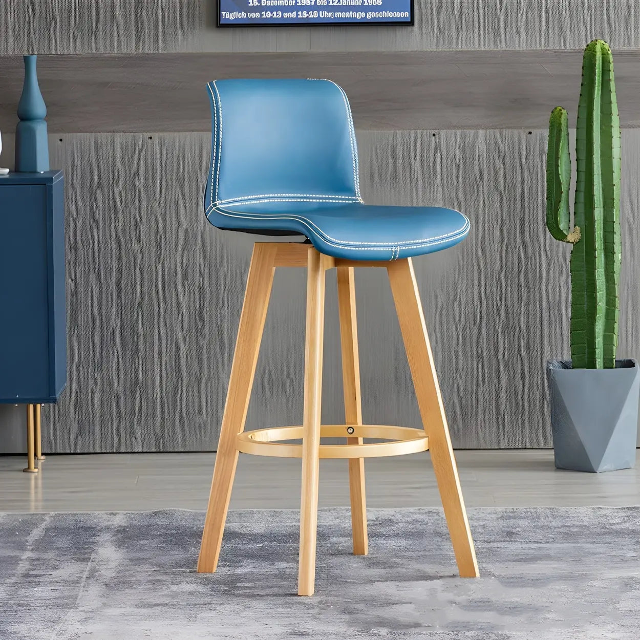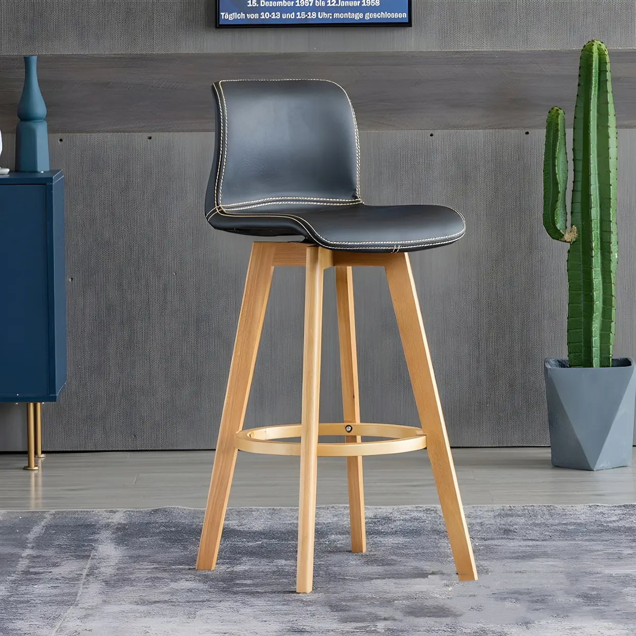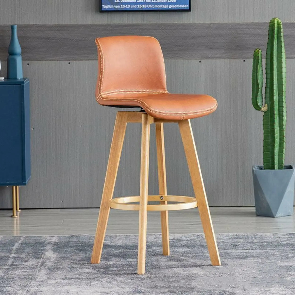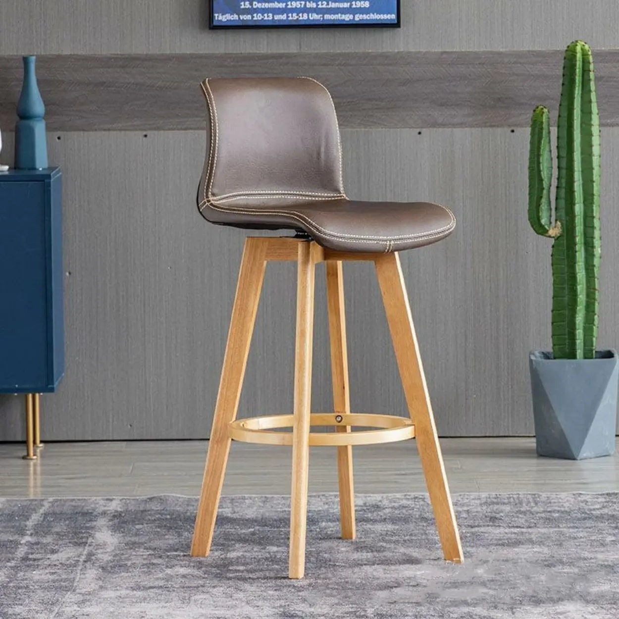 Living Room Leather Saddle Seat Backrest Wood Bar Stool