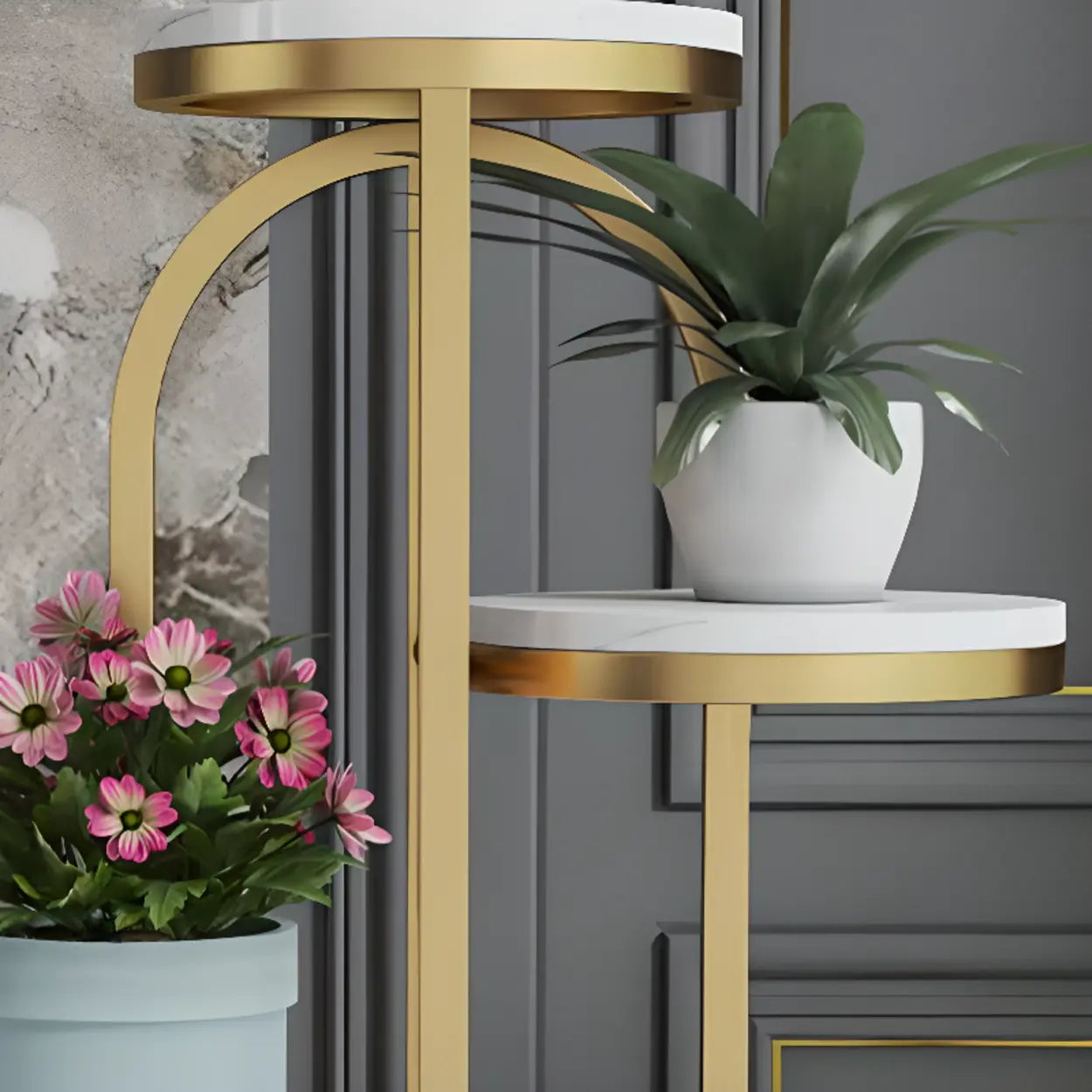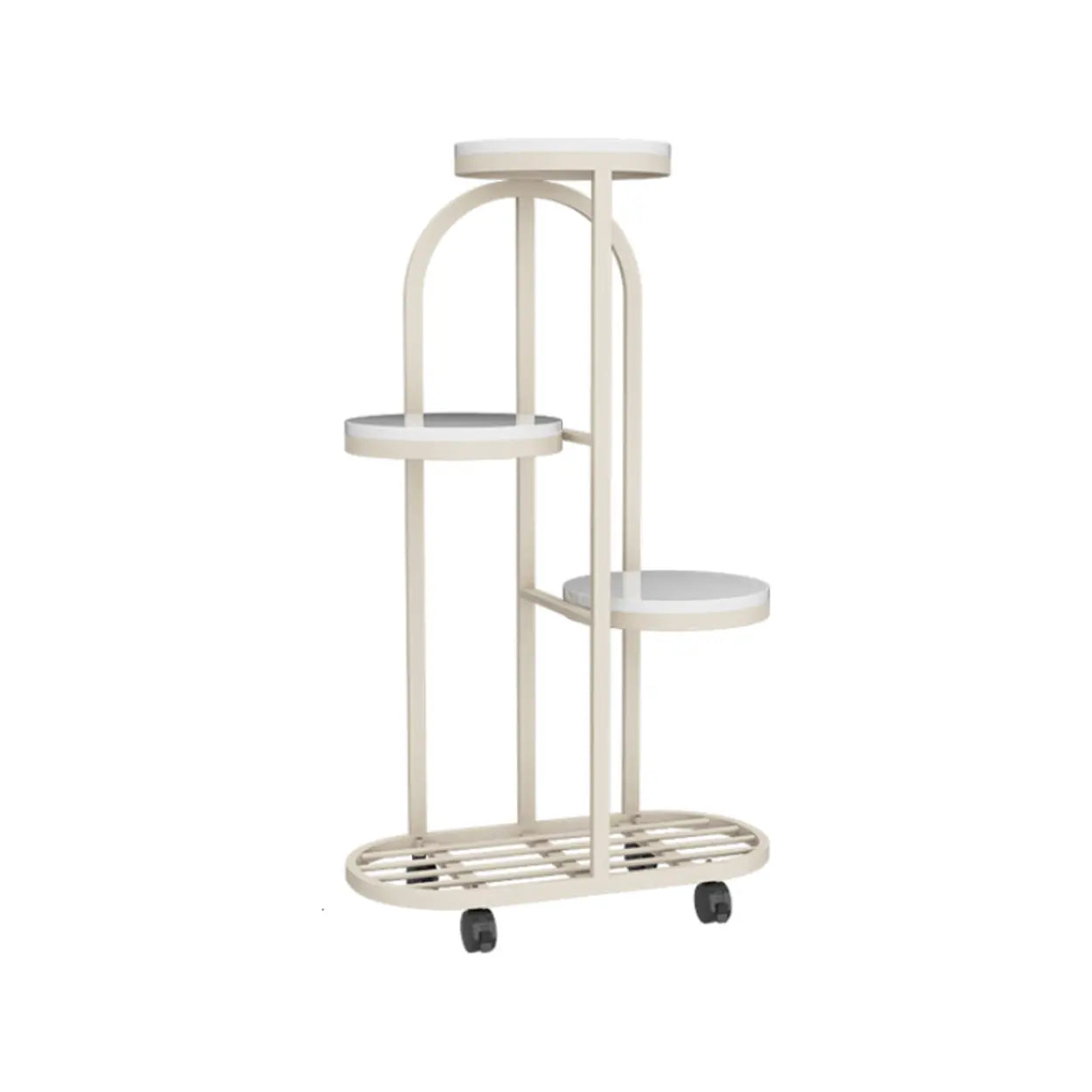 Living Room Round Metal Multi-Tier Plant Stand Cream