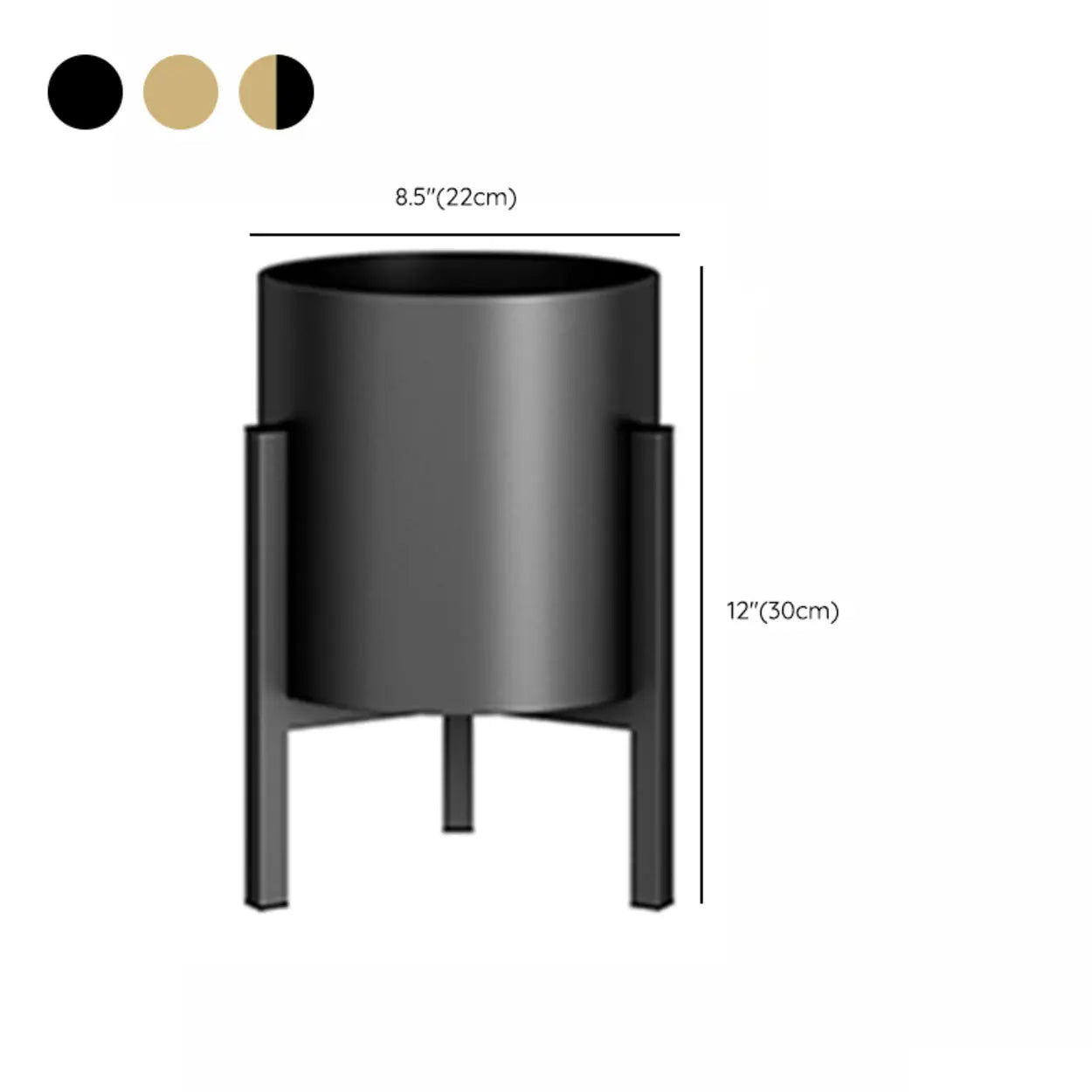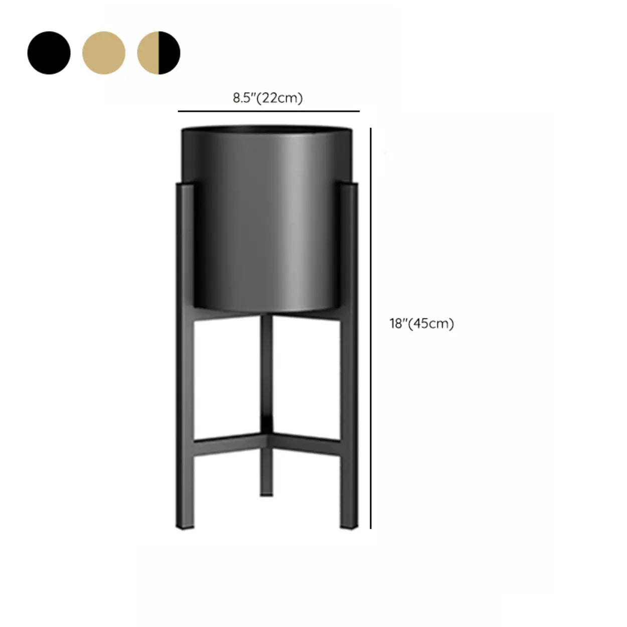Living Room Round Metal Tripod Pot Plant Stand Gold - Black / 9"L x 9"W x 18"H is backordered and will ship as soon as it is back in stock.