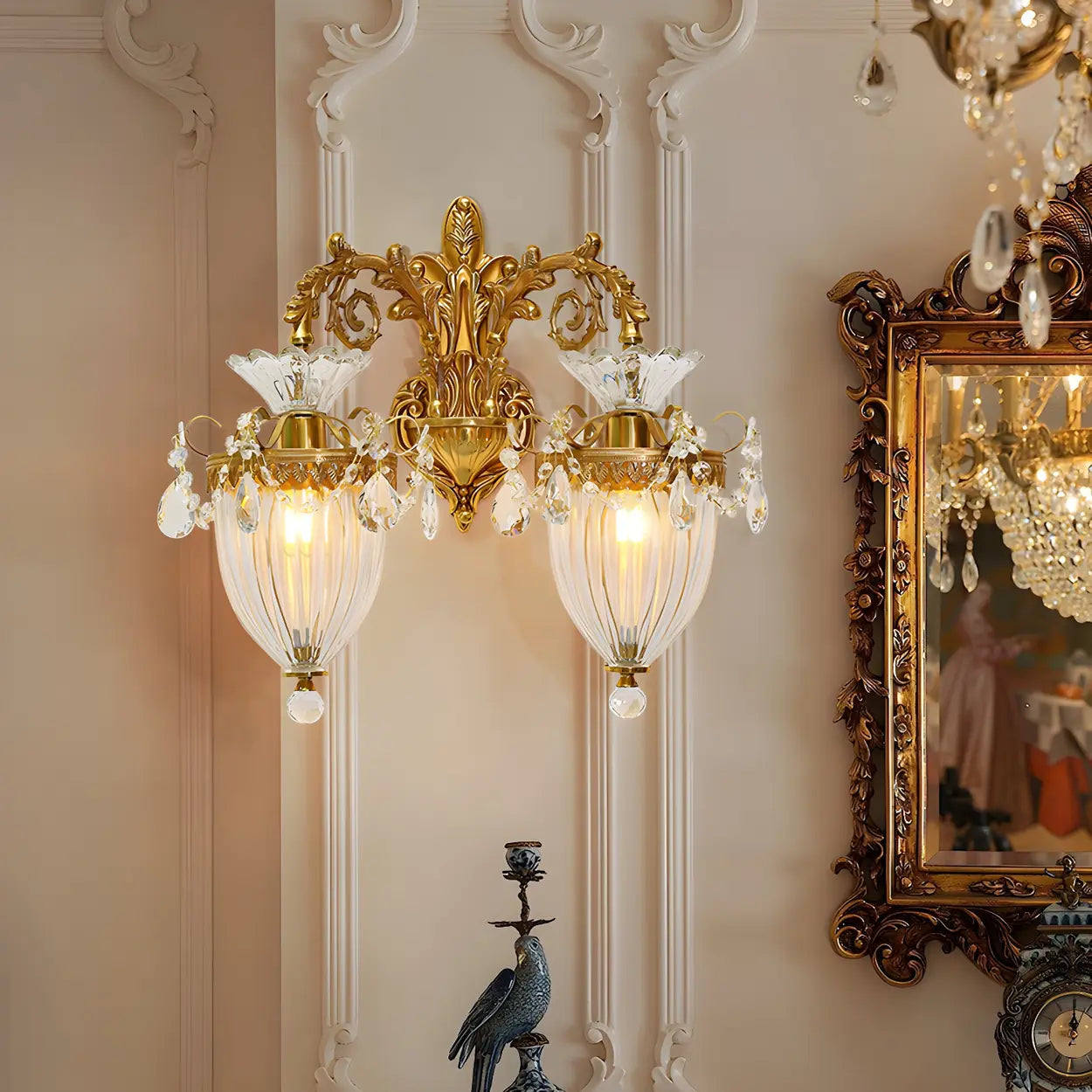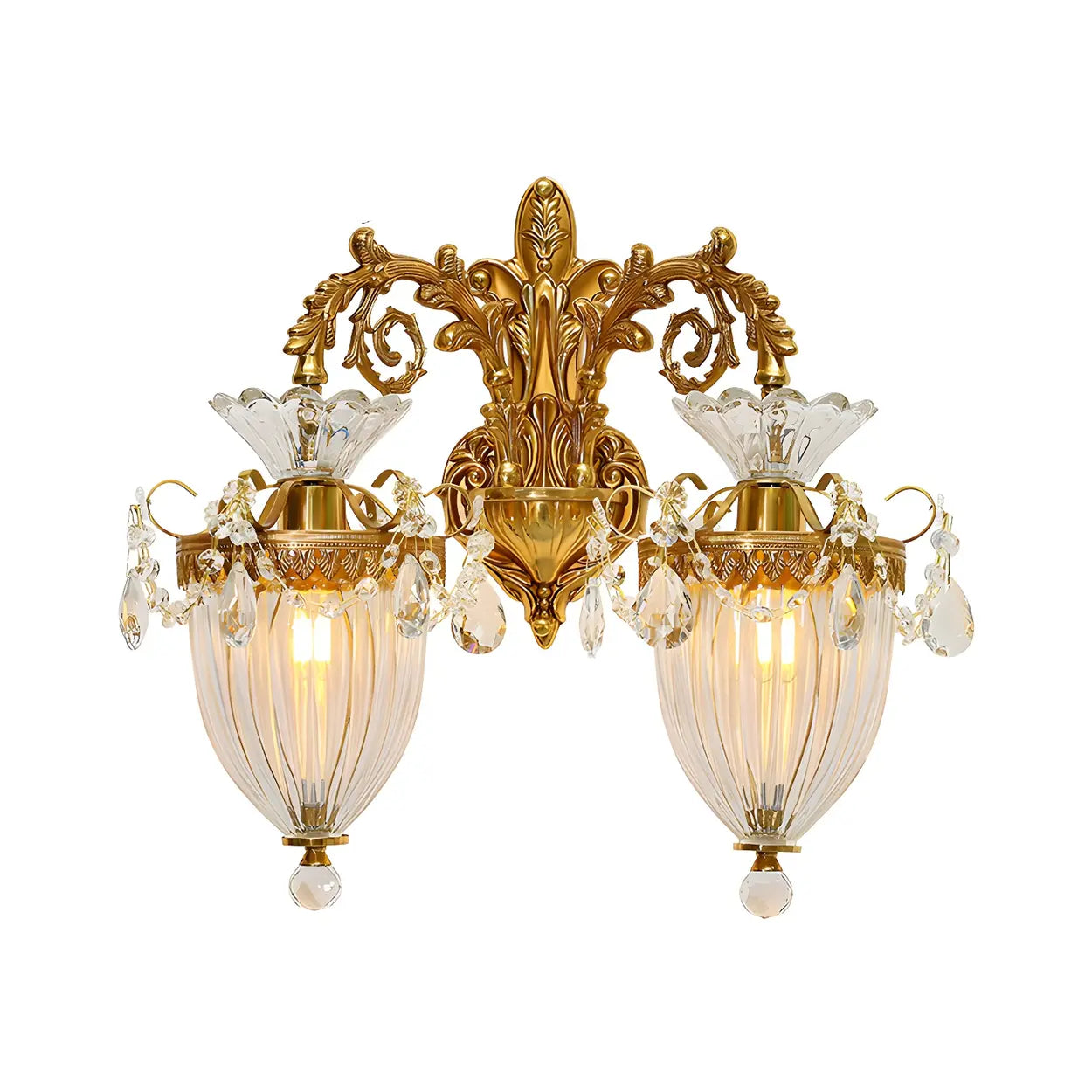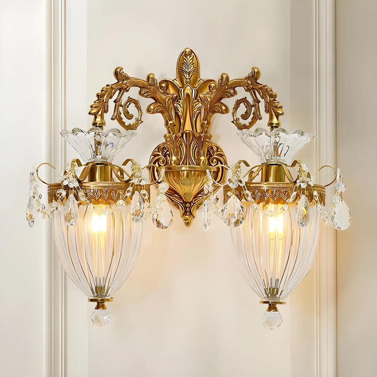 Luxury Crystal Wall Sconce with Gold Finish, Double Light