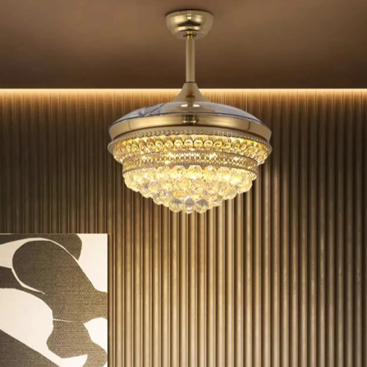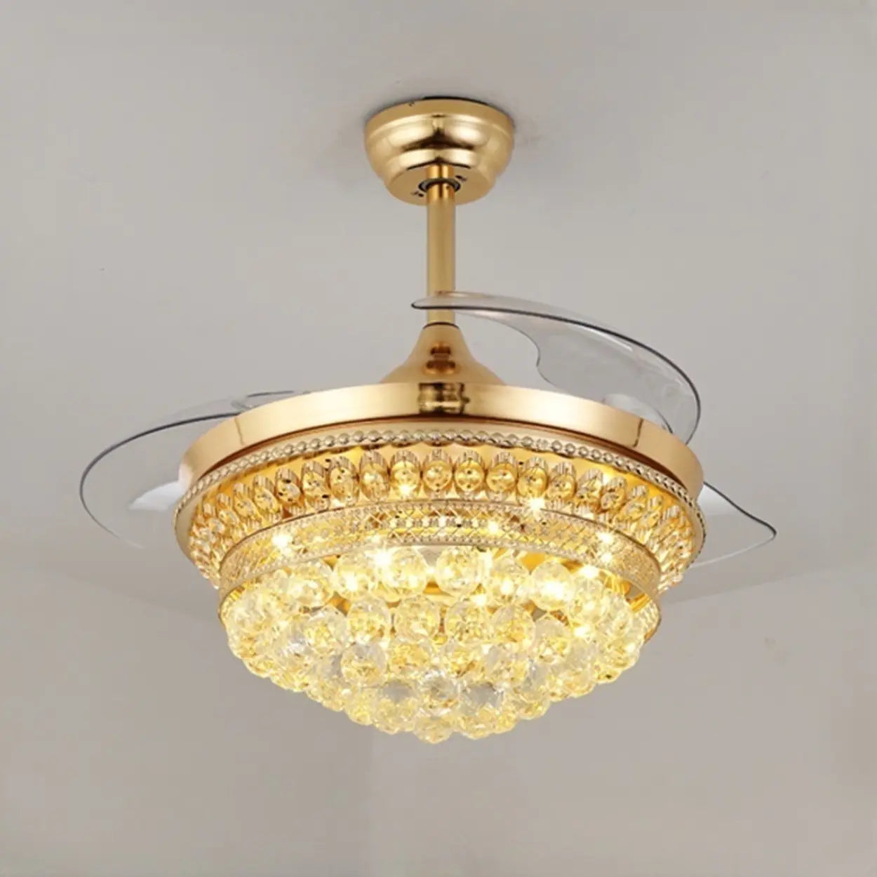 Luxury Gold Crystal Bowl Ceiling Fan with LED Light
