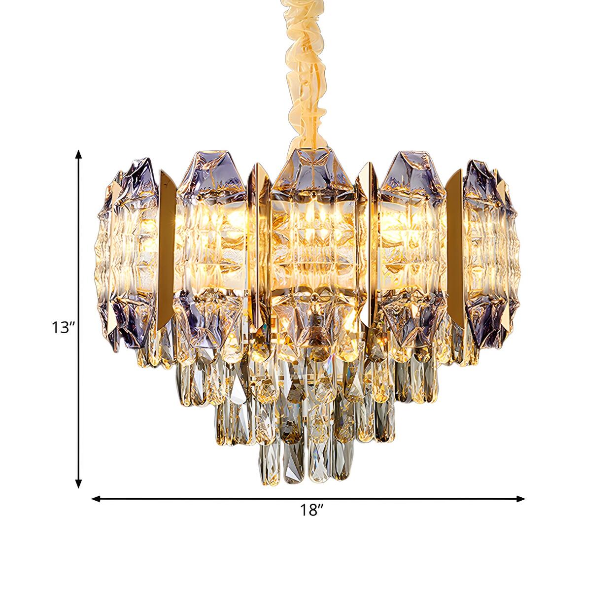Luxury Gold Tiers Crystal Conical Prism Hanging Chandelier