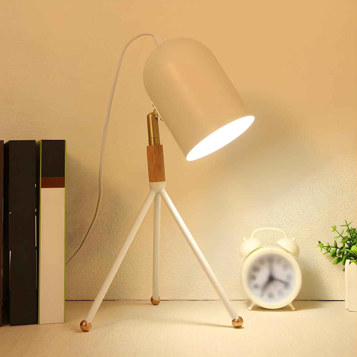 This macaron-hued tripod desk lamp features a stylish design with a dome lampshade. It provides ideal reading lighting for dormitories or study rooms. The lamp combines metal materials with wooden details, making it practical and modern.