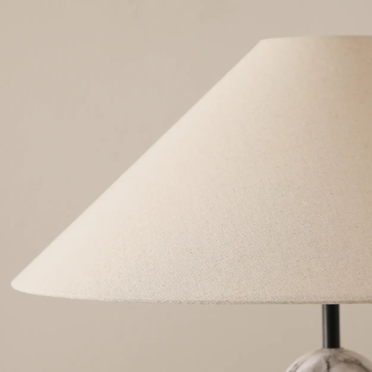 A stylish marble-patterned sphere sits just beneath the shade, adding elegance and visual interest to the transition point. This subtle artistic detail breaks up the straight lines, giving the lamp a unique and premium look.