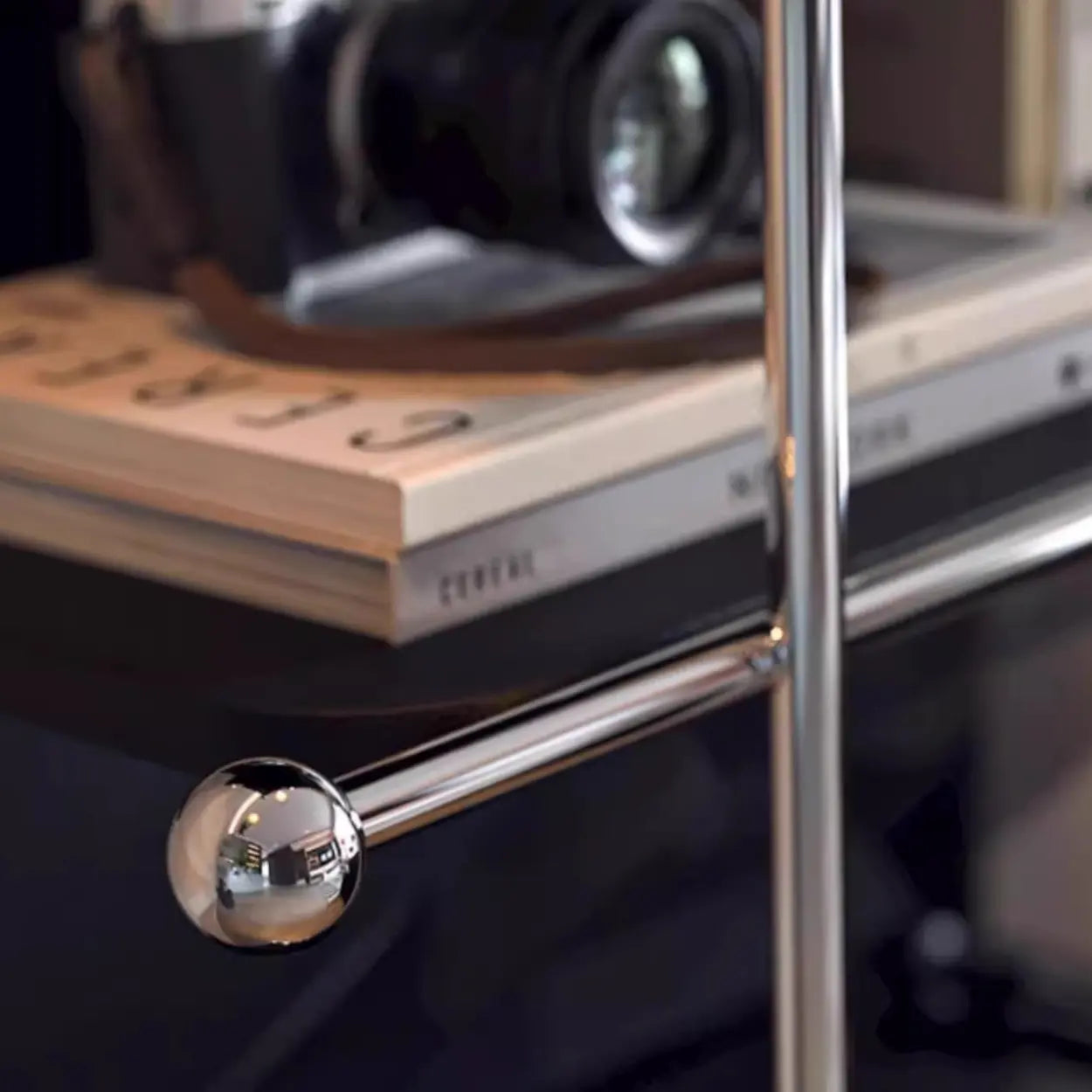 Mid-Century Modern Narrow Corner Stainless Steel Bookshelf