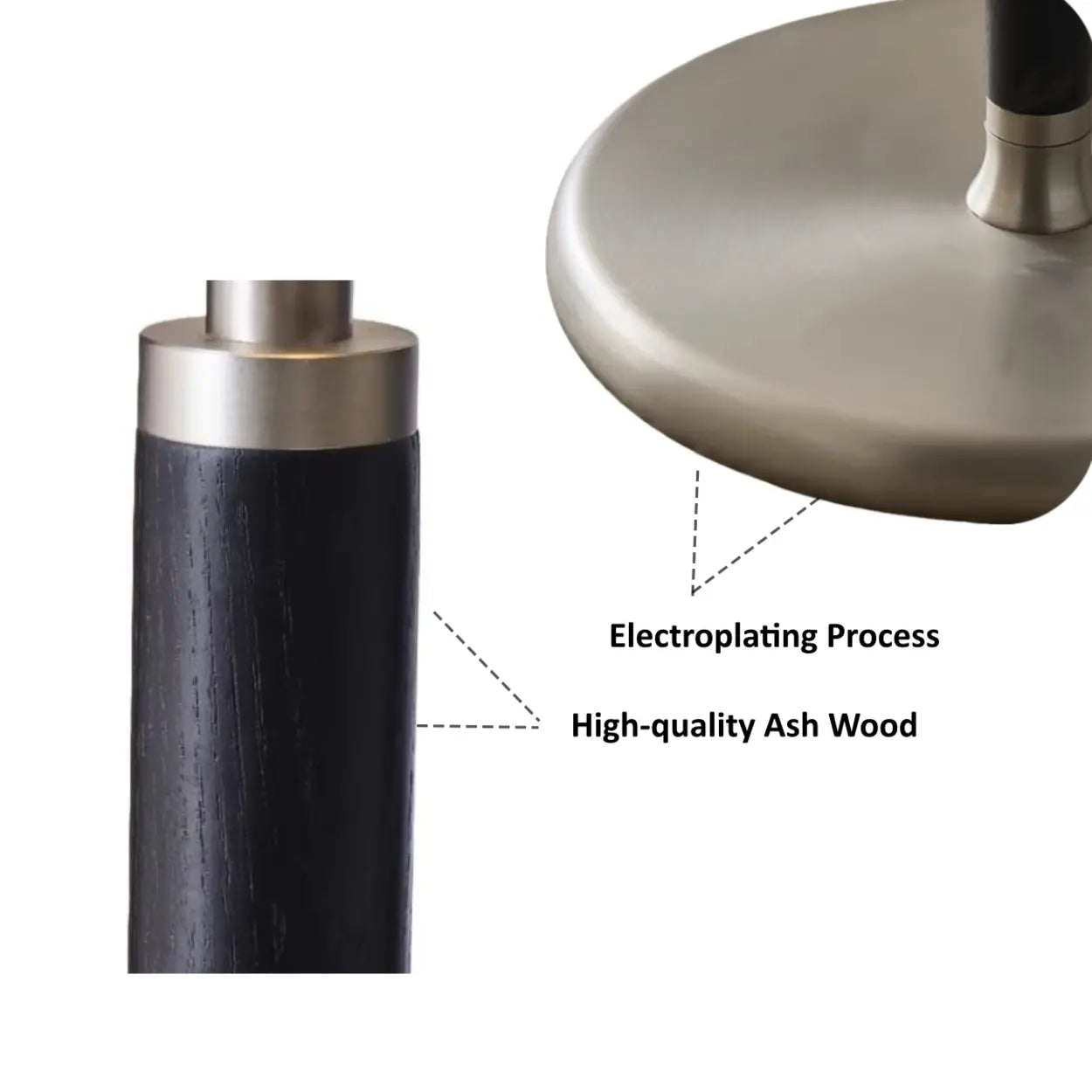 The supporting pole combines sturdy metal with ash wood elements for a unique mixed-material aesthetic and lasting durability. This solid construction ensures the lamp stands straight and remains stable on your floor, resisting wobbling near pets or children.