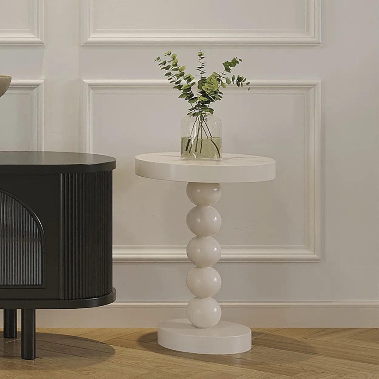 This end table features a modern round top and distinctive ball-shaped base. Its design enhances room appeal and fits seamlessly with a variety of styles, making it practical for both classic and modern homes.