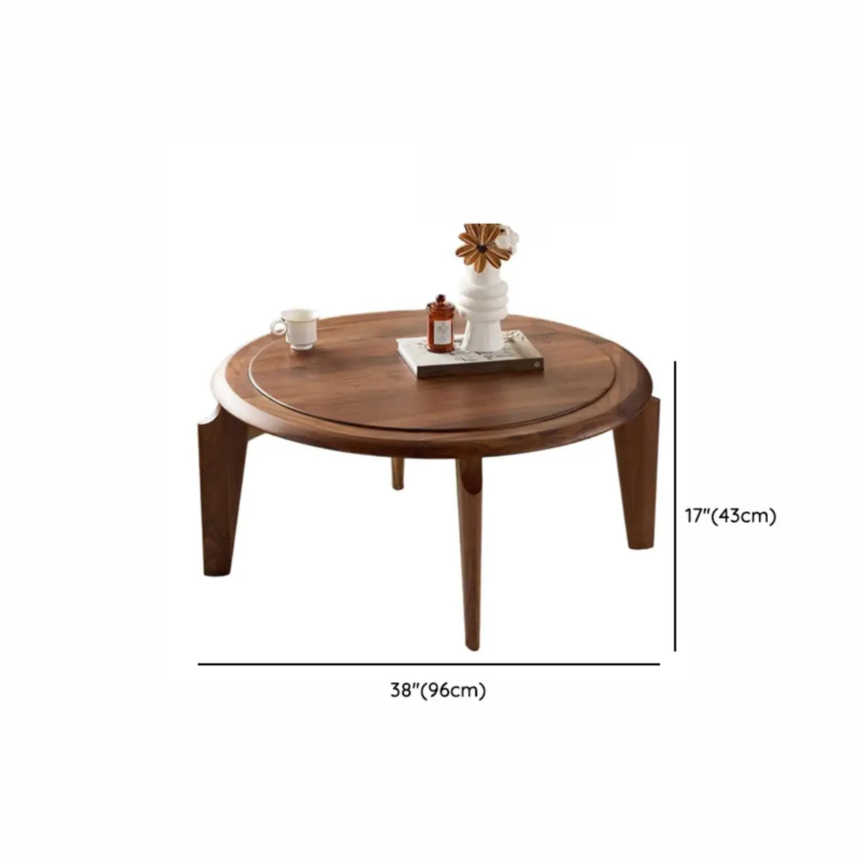 This round solid walnut wood coffee table grounds your seating area with warm brown tones. The smooth circular surface provides a reliable spot for your morning espresso and current reading materials.