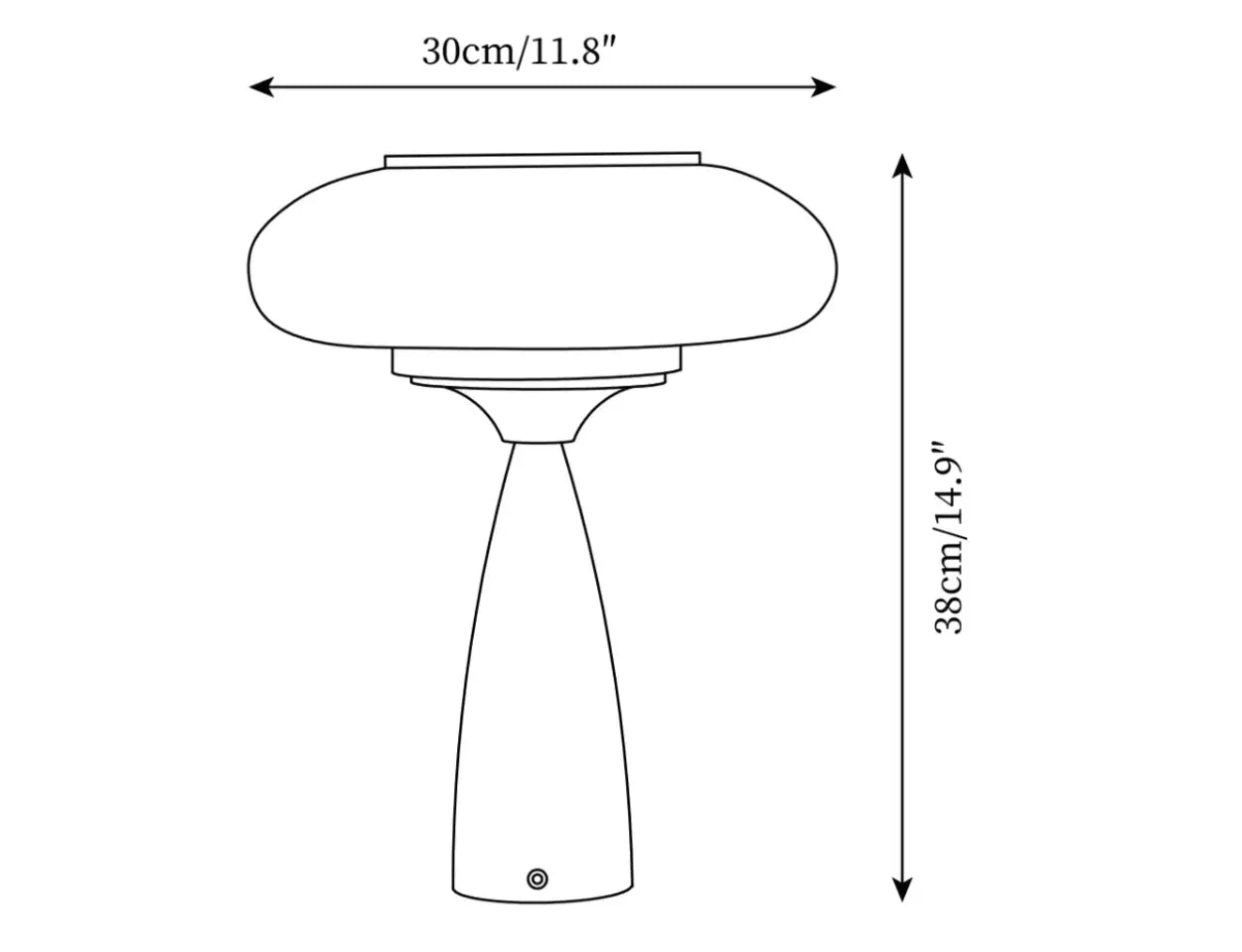 This mushroom-style table lamp combines a walnut-colored wooden base with a ribbed amber glass shade. With adjustable light settings, it provides a functional glow for reading or a soft ambiance for relaxing evenings at home.