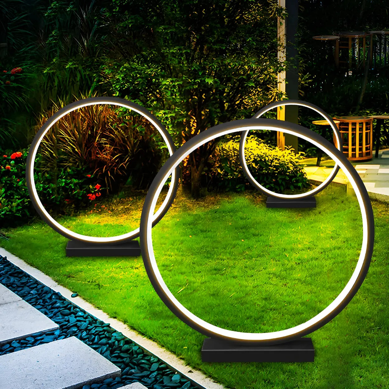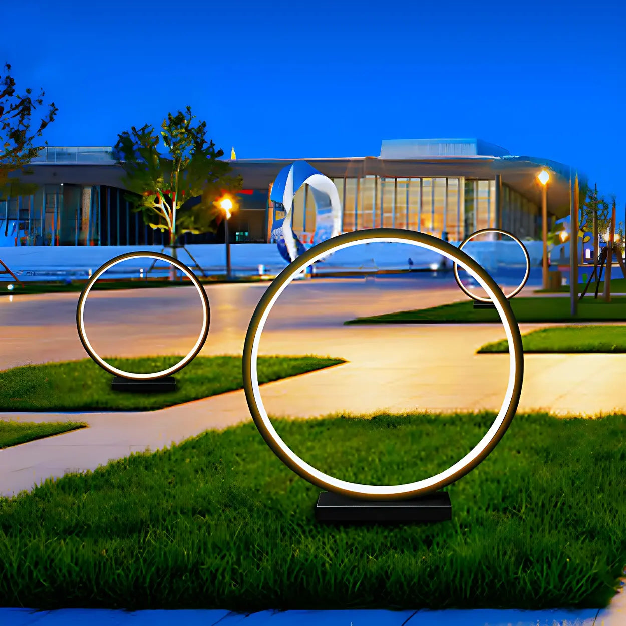 This modern ring outdoor light is a perfect combination of art and practicality, becoming a dazzling focal point of your outdoor space. Its simple ring design not only has a sculptural beauty but also adds a warm atmosphere to your yard at night. Whether it is used for yard decoration or lighting up the garden path, this lamp can show a unique charm. The lamp body is made of high-quality metal, ensuring excellent weather resistance and long service life.