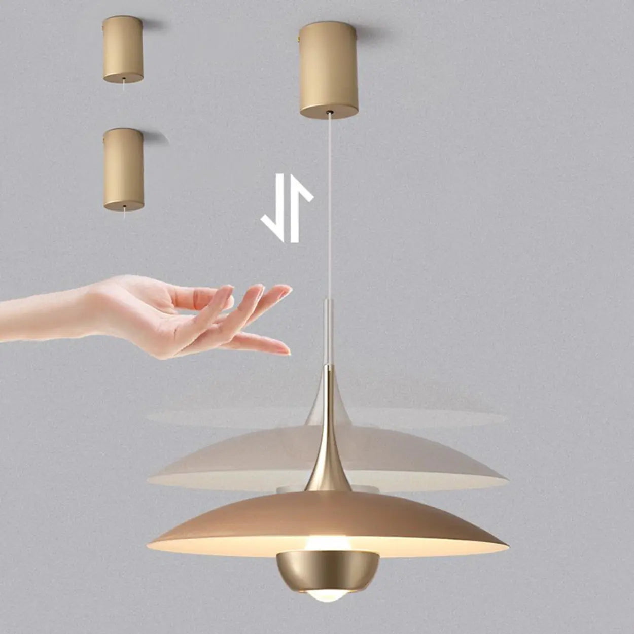 This pendant light showcases a minimalist design, combining aesthetics with practical functionality. Its simple lines and soft light make it perfect for dining rooms, kitchens, or bedrooms. The smooth surface and metallic texture highlight elegance and style, making it an ideal choice for modern homes.