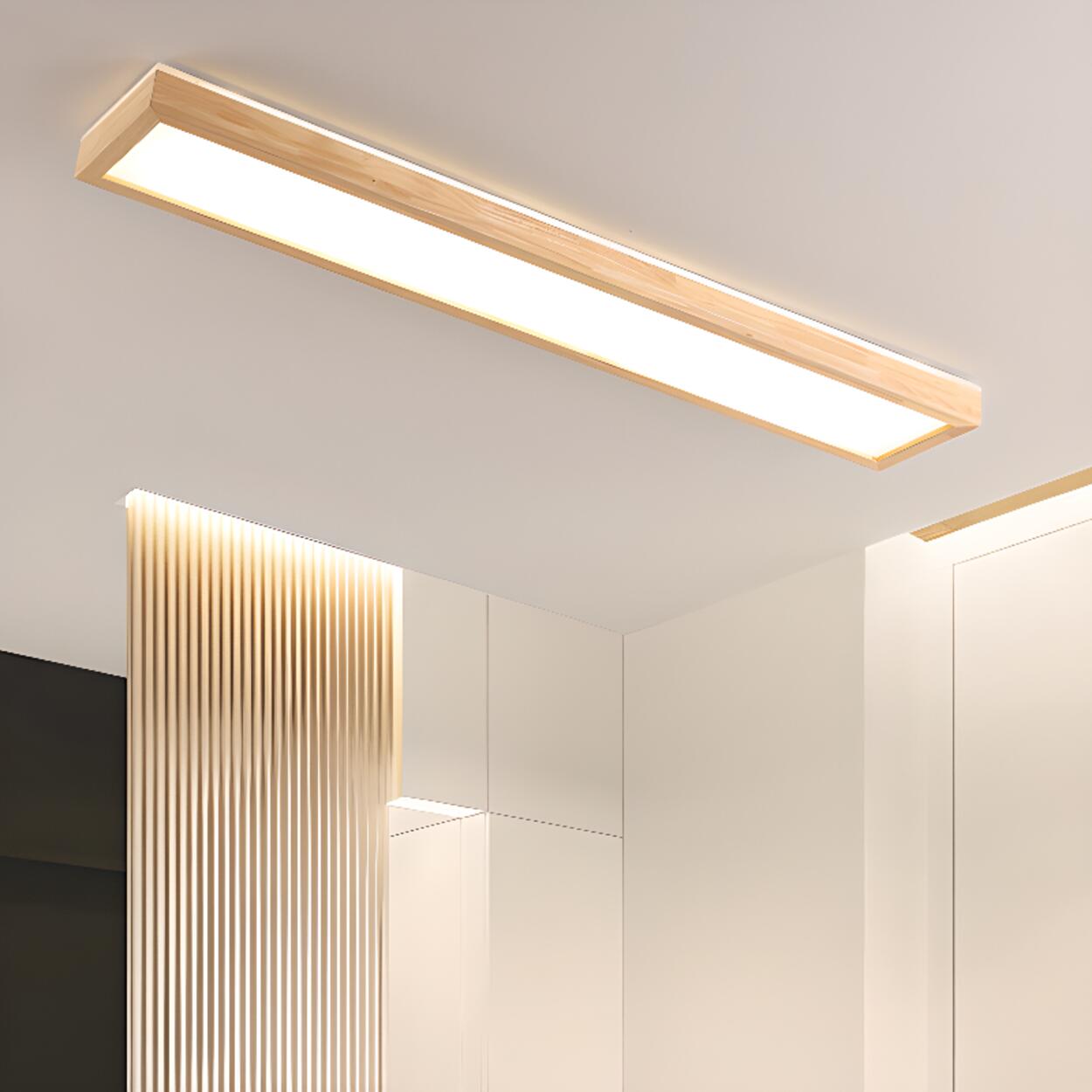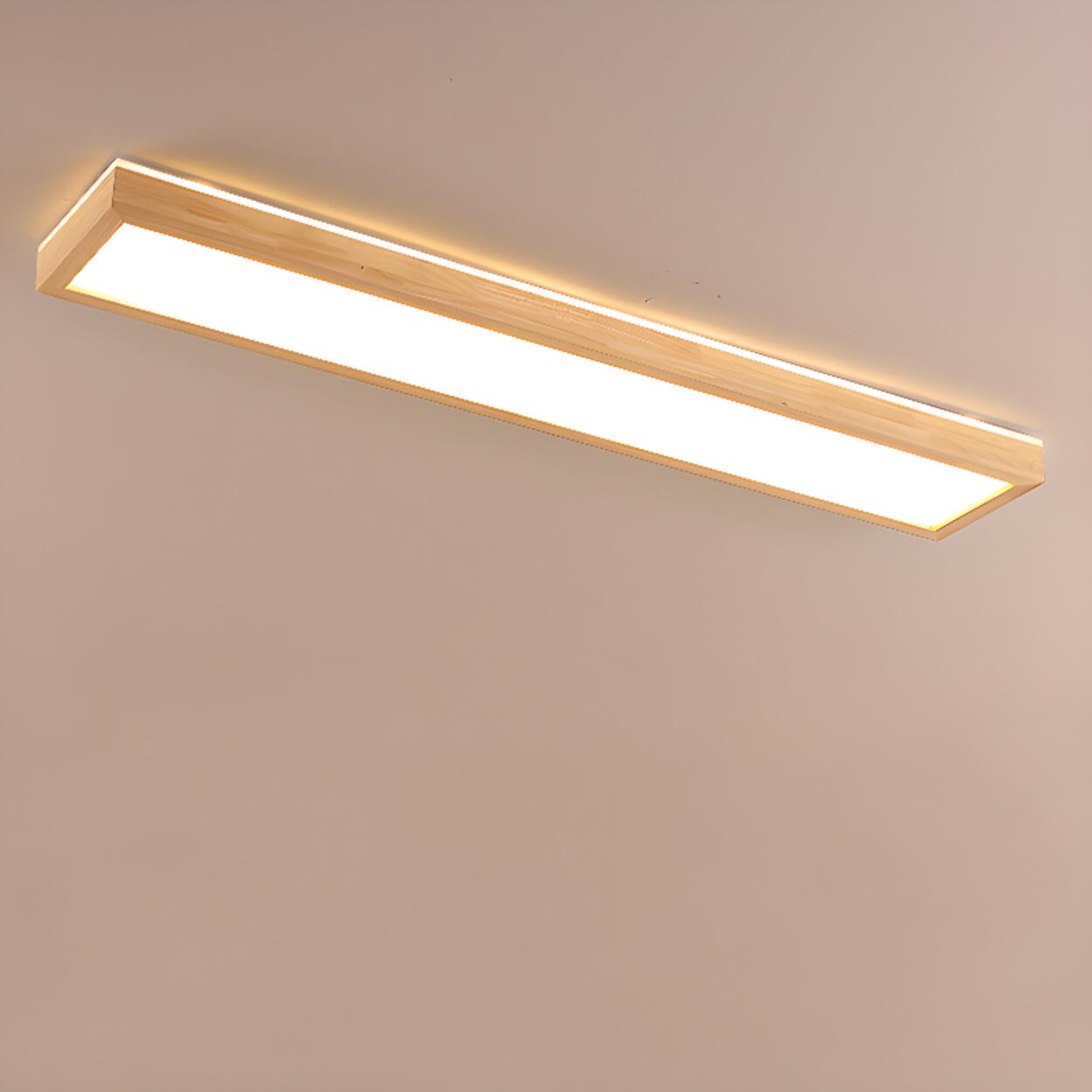 Minimalist Rectangular Wooden LED Flush Mount Light