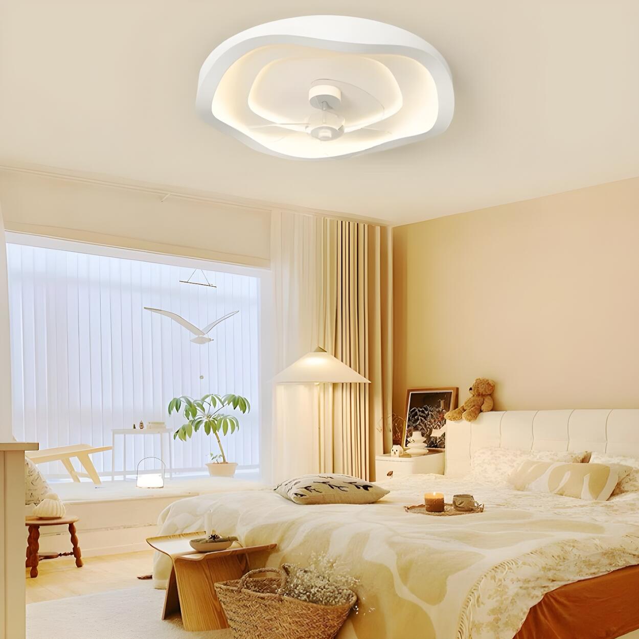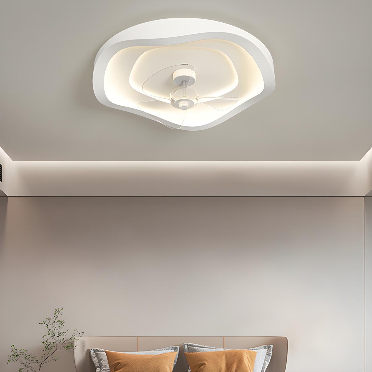 Minimalist Round White Wave Ceiling Fan with LED Light