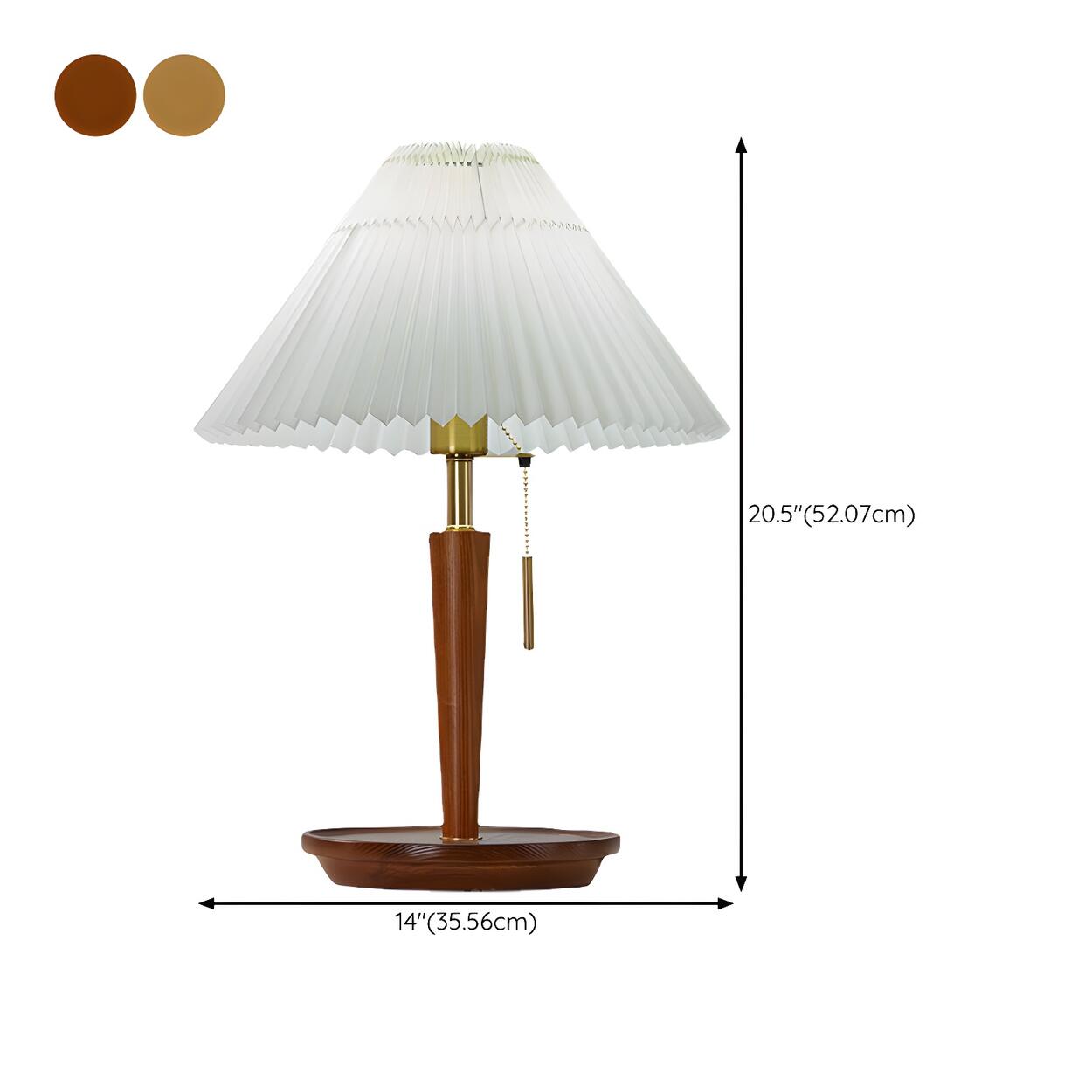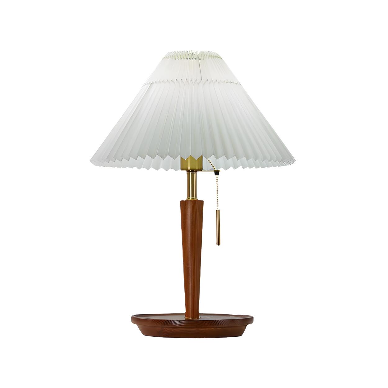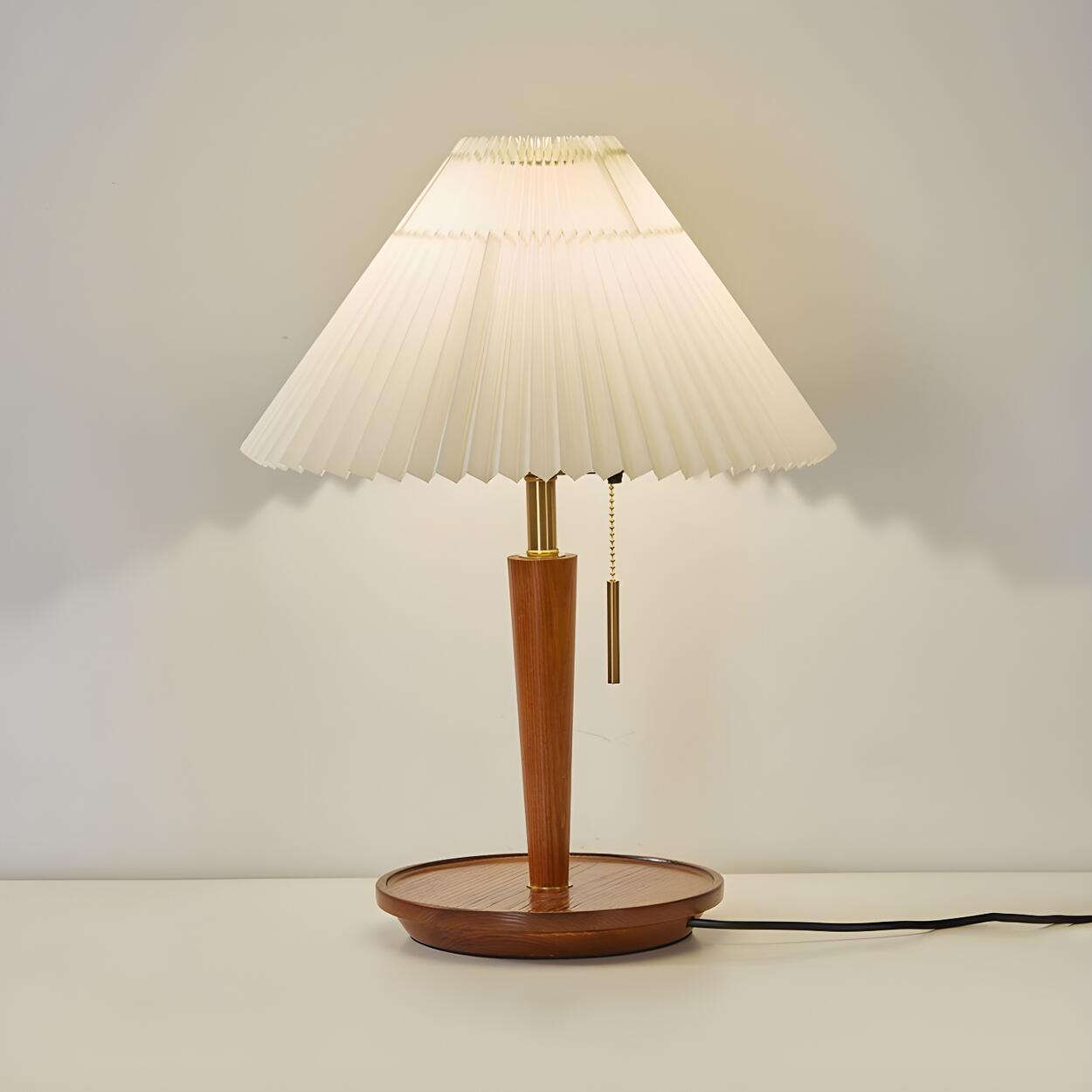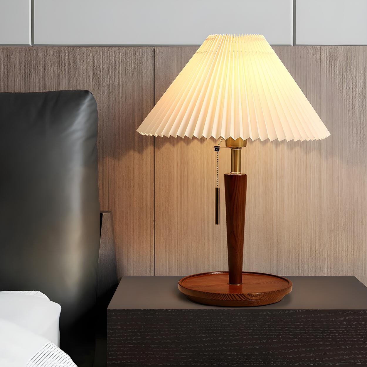 Minimalist White Pleated Shade Wooden Base Table Lamp