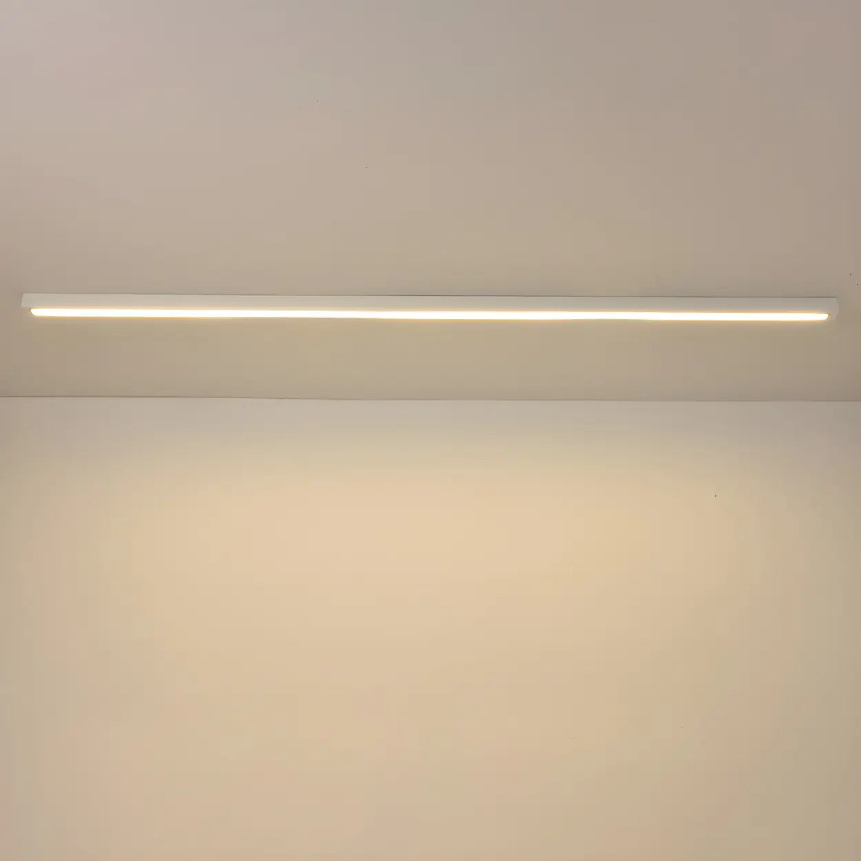 This minimalist LED flush mount ceiling light features a sleek linear design with a wood-finish frame, perfect for adding contemporary style to any room. The energy-preserving LED lighting furnishes bright, even illumination, making it ideal for living rooms, kitchens, or hallways.