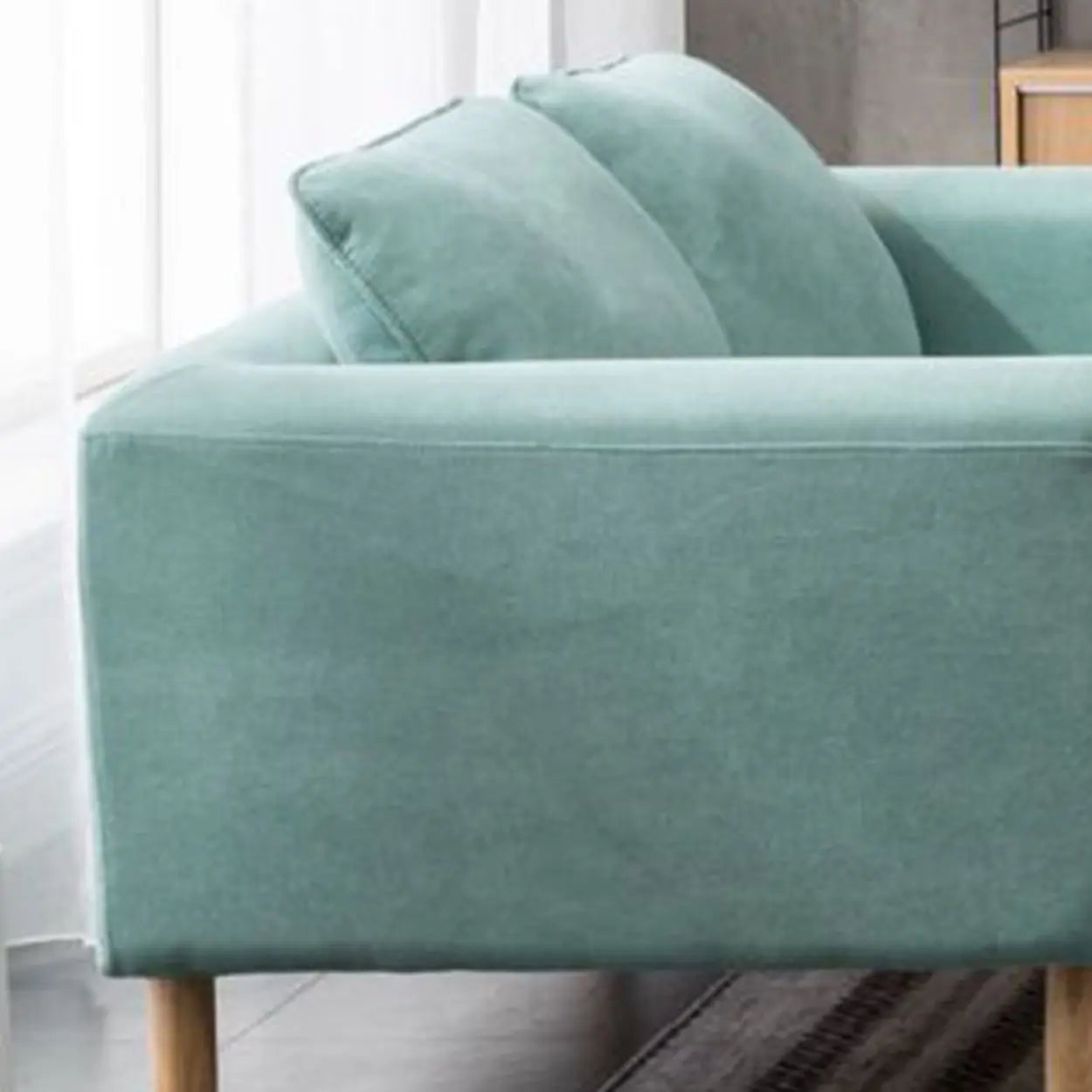 Mint Green Flannel Fabric Pillow Back Square Arm Sofa