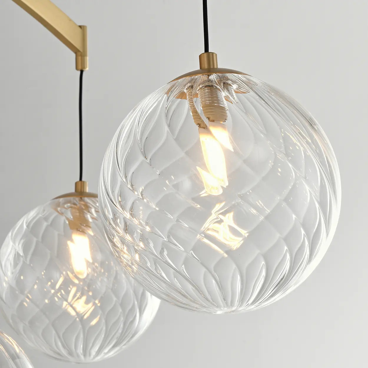 The chandelier features multiple clear glass globes, each with a distinctive, swirling texture. This design diffuses the light beautifully, adding visual interest and creating a soft, warm ambiance in your space.