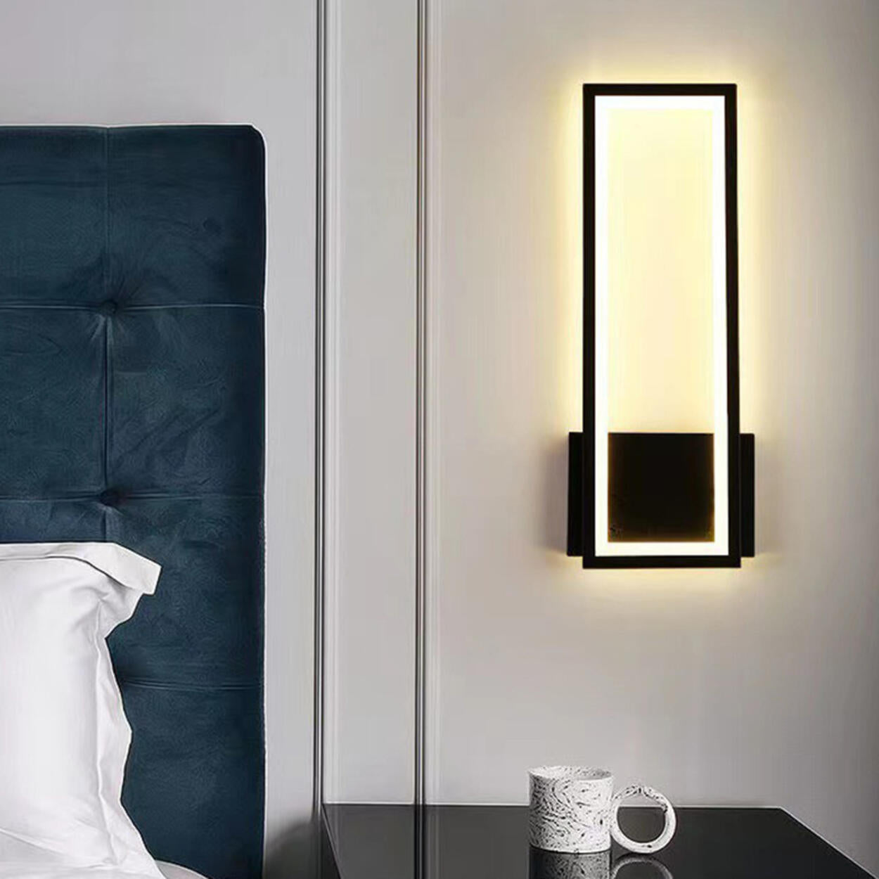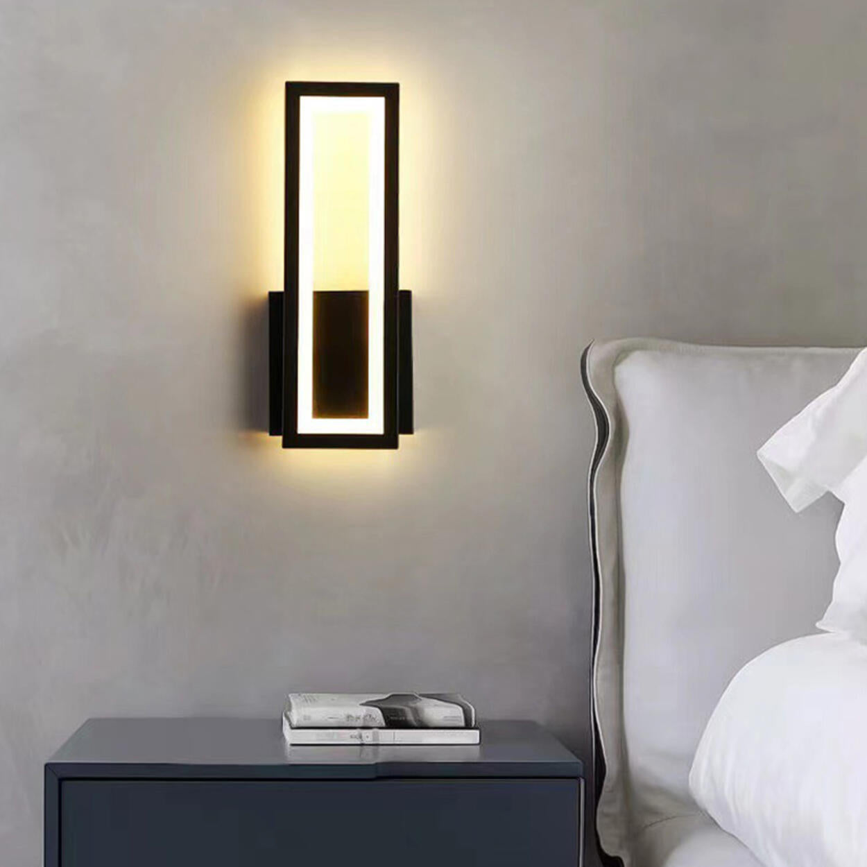 Modern Backlit Black Rectangular Bedroom Wall Sconce