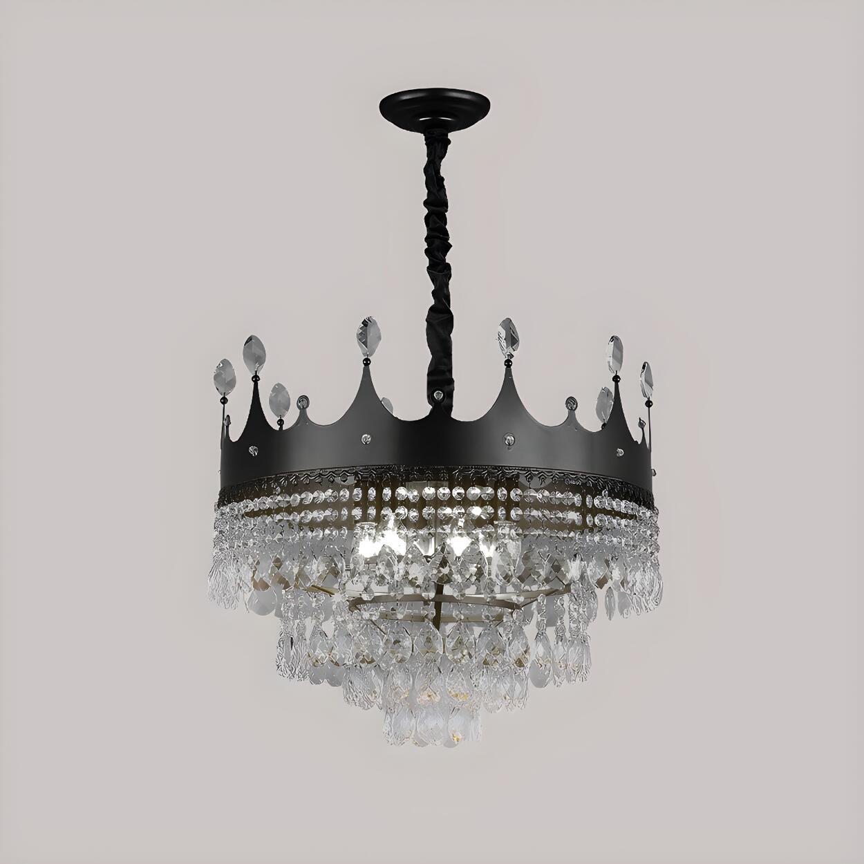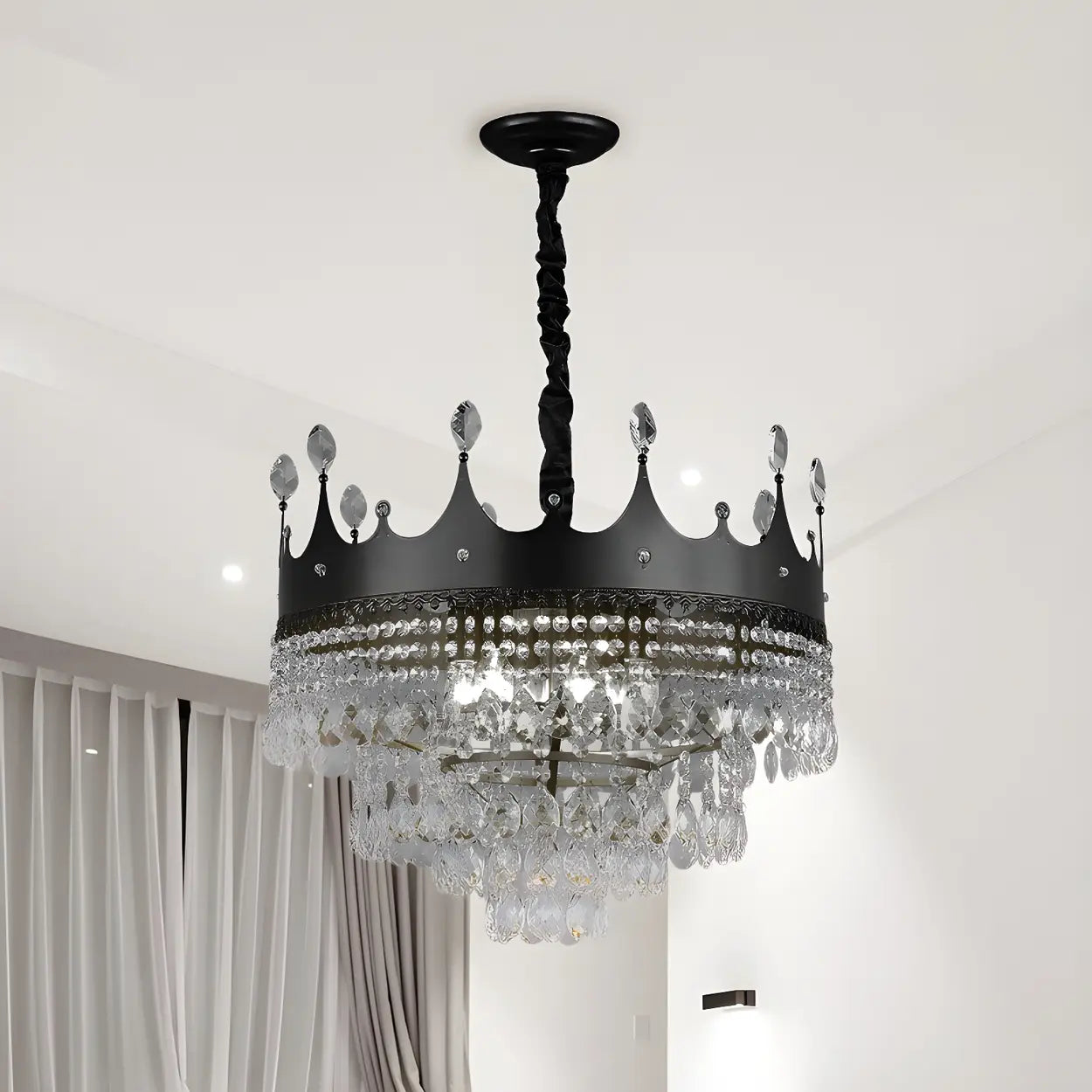 Modern Black Crown Crystal Pendant Kids Room Chandelier