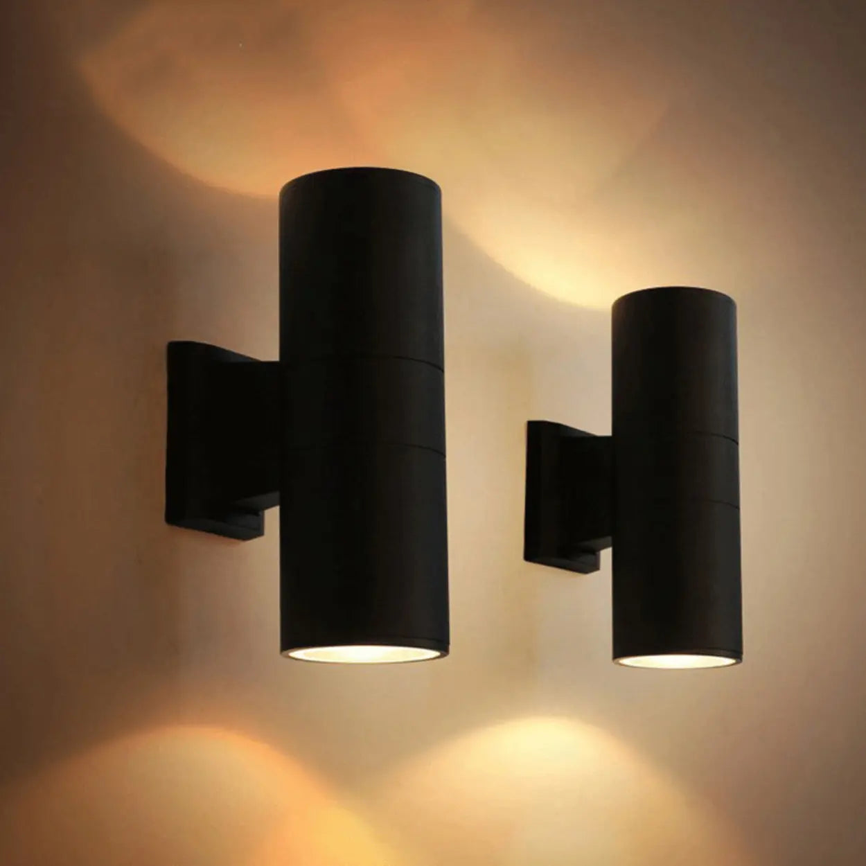Modern Black Metal Cylinder Up Down Exterior Wall Light