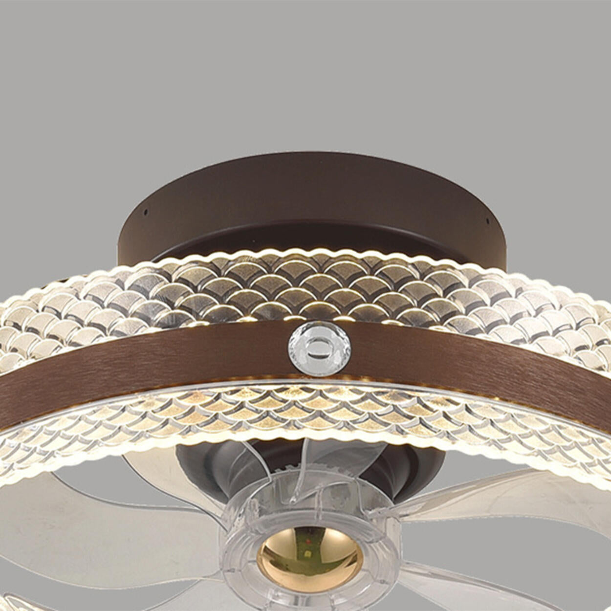 Modern Brown Round Clear Blade LED Ceiling Fan Light