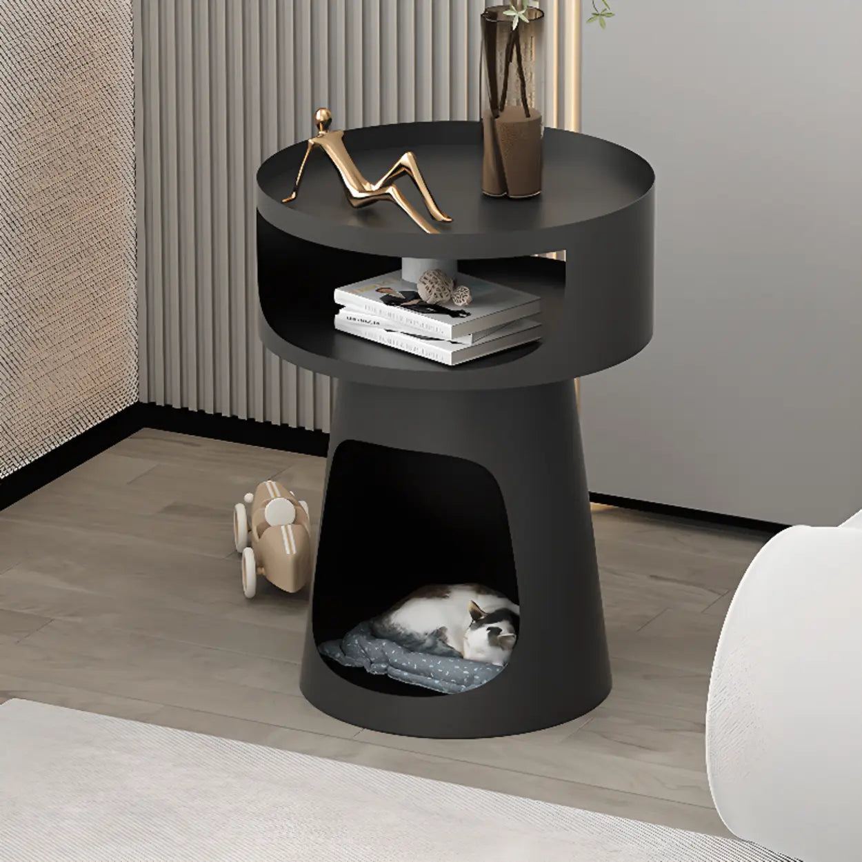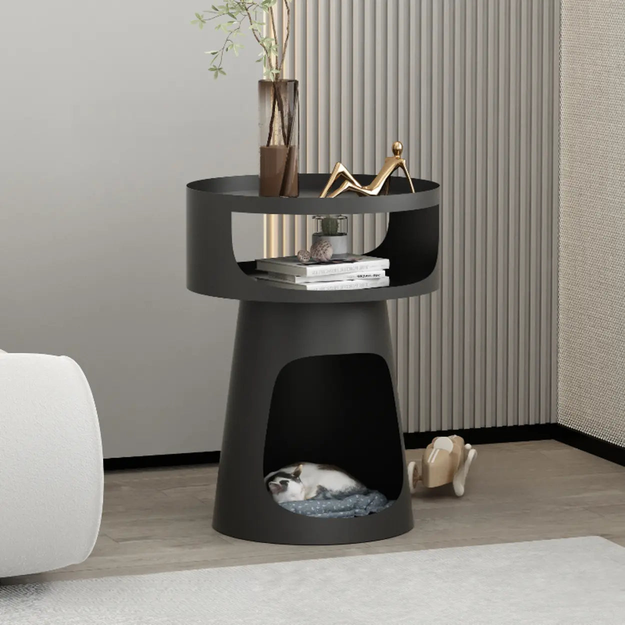 The top layer is perfect for plants, ornaments, and daily essentials; the middle shelf offers space for books and magazines; and the bottom area serves as a pet nest or large storage zone, maximizing space utilization.