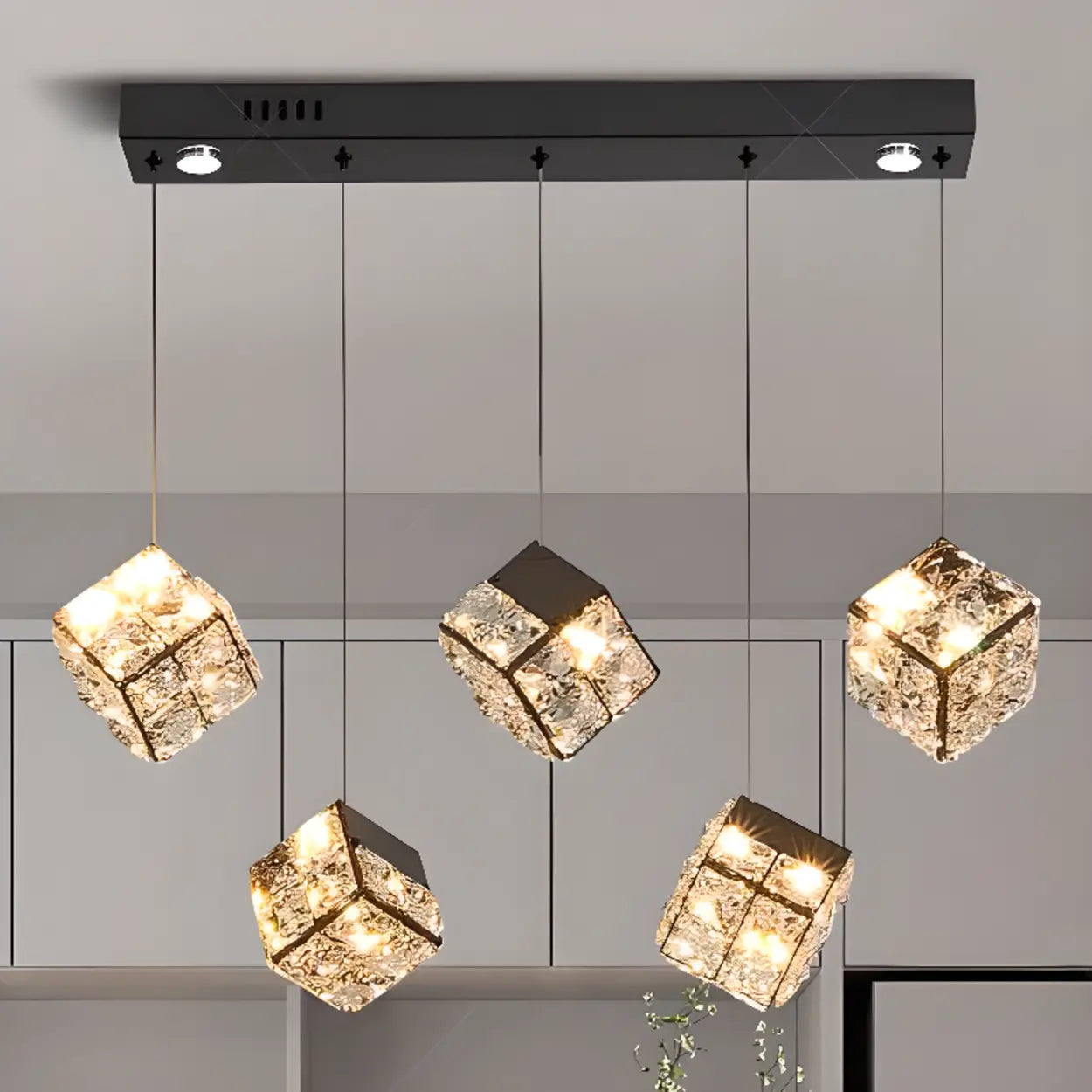 Modern Crystal Cube Pendant Light for Dining Room & Kitchen