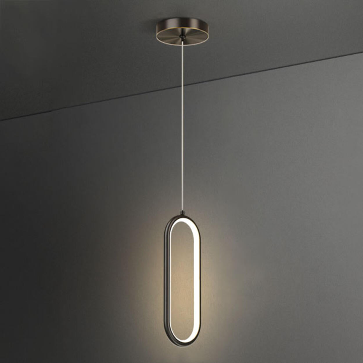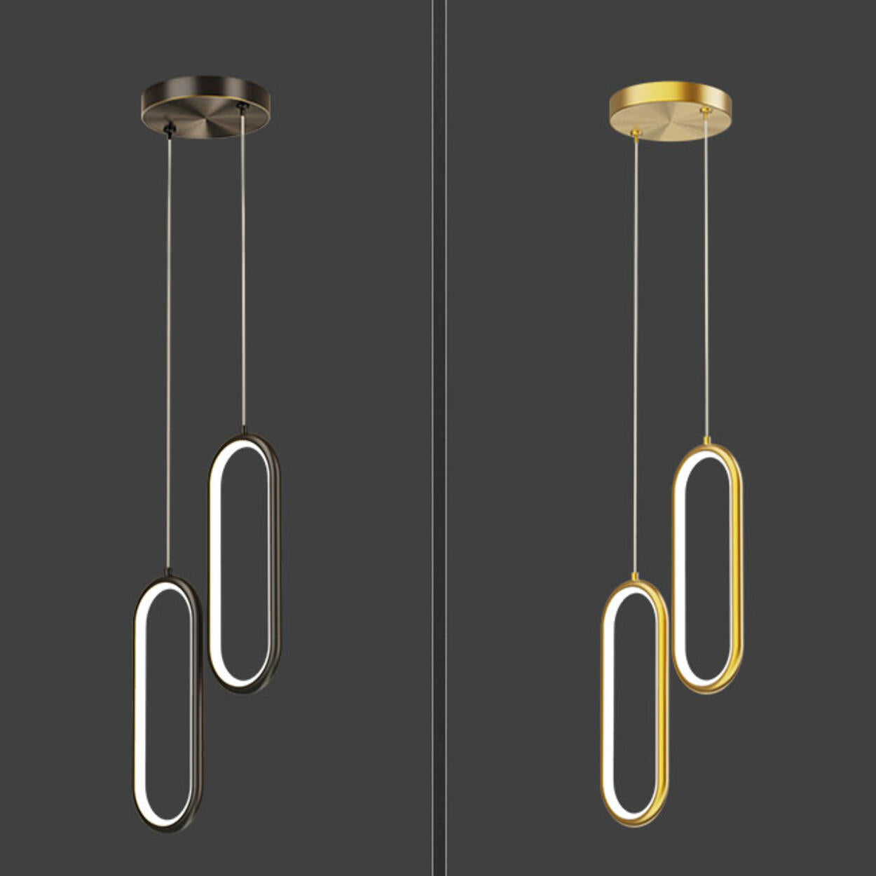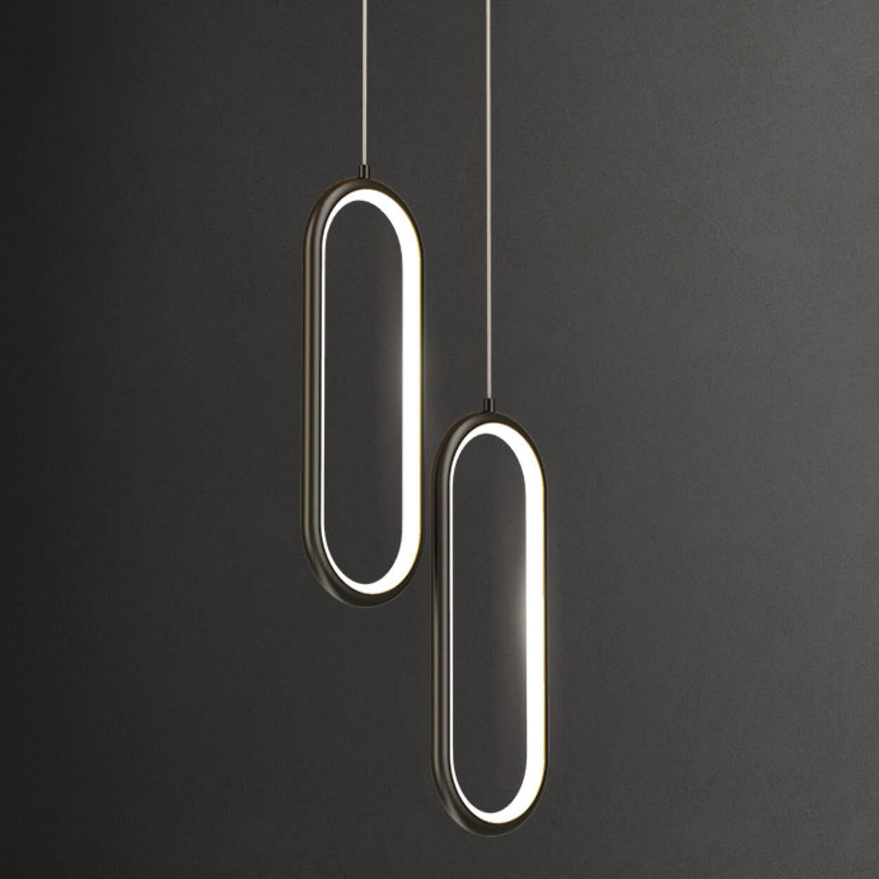 This modern double oval pendant light follows a simple design concept. The stylish metal frame and LED light source create an elegant and warm lighting atmosphere. It perfectly complements modern home styles whether installed in the living room, dining room, or bedroom.