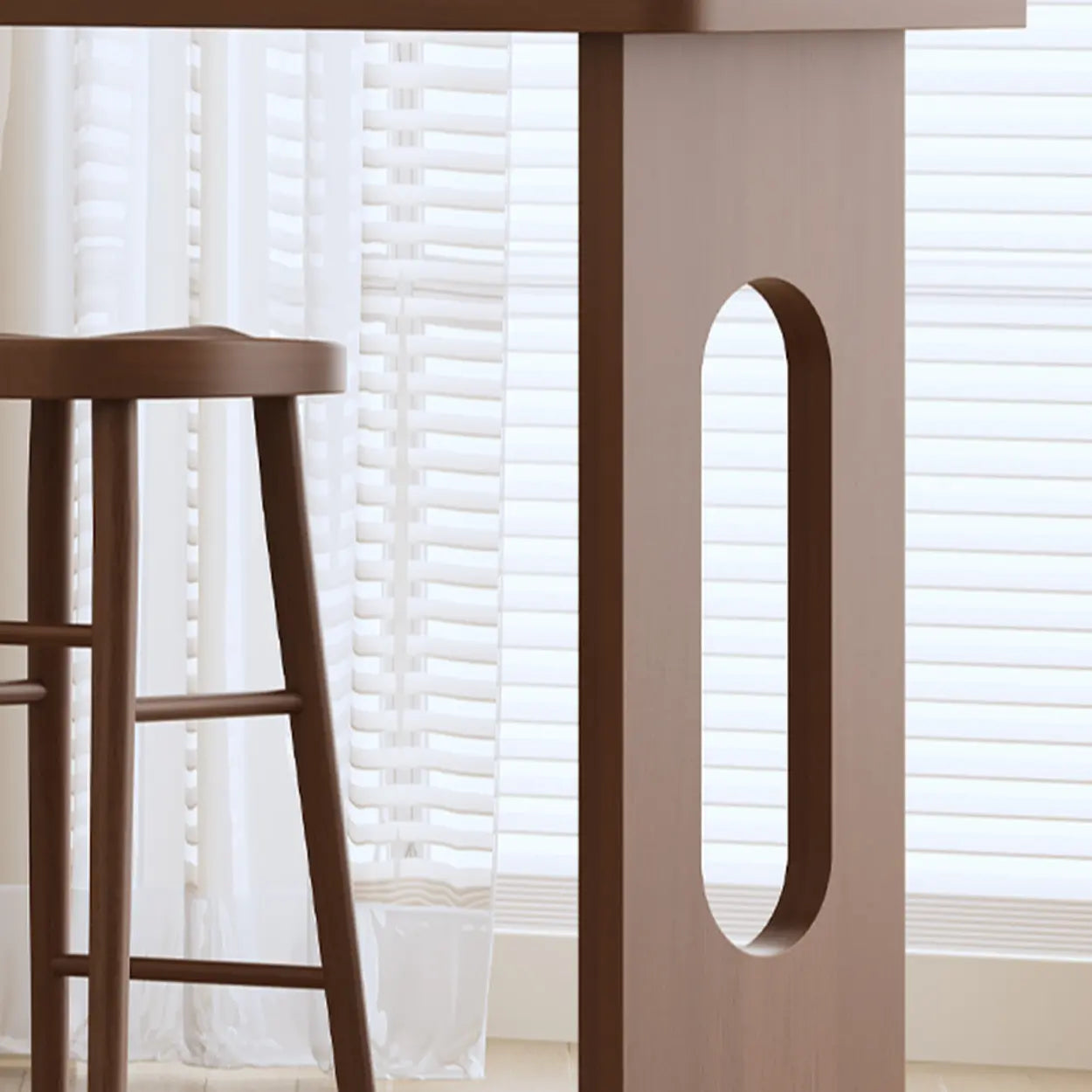 Modern Double Pedestal Rectangular Slim Brown Wood Bar Table