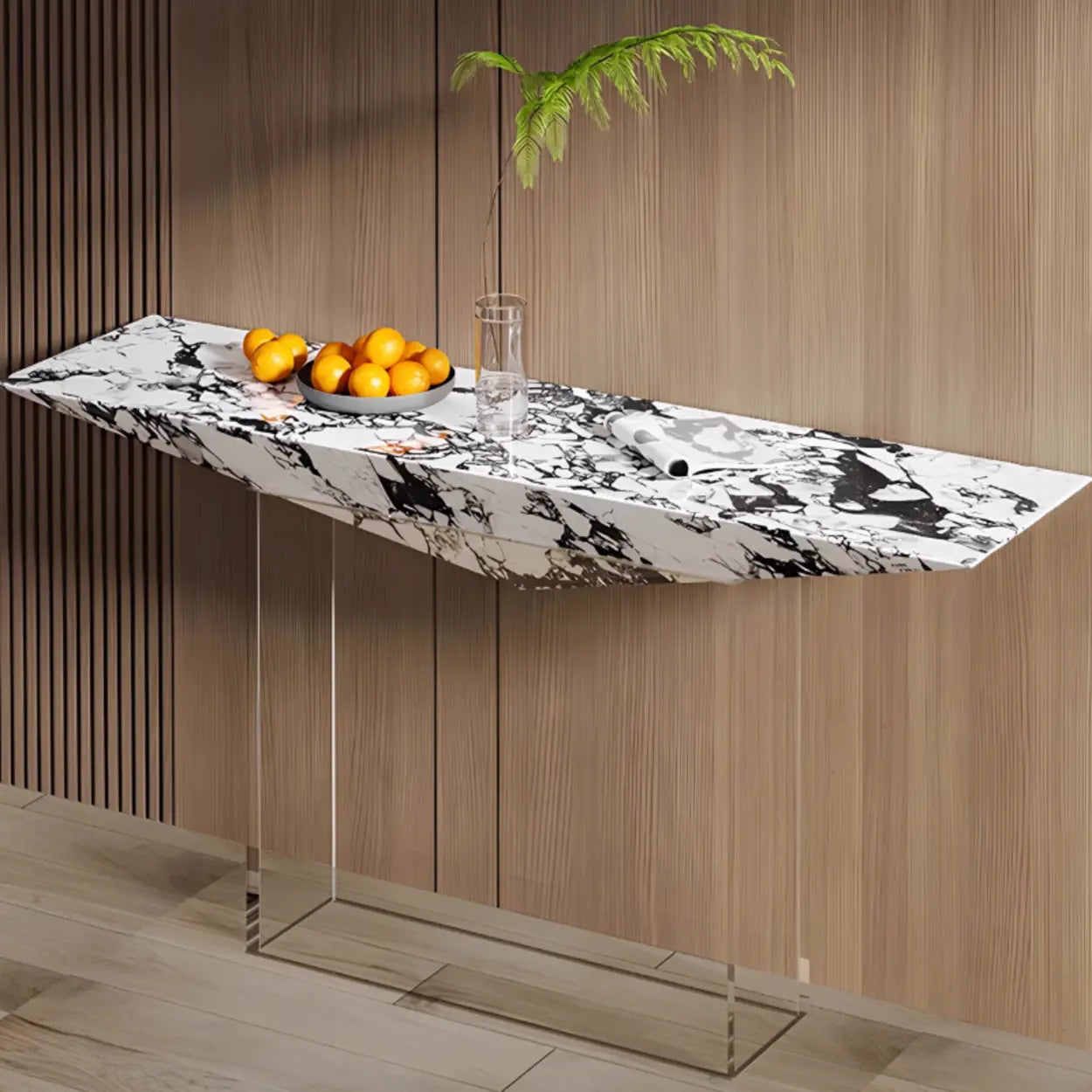 Modern Entryway Triangle Stone Clear Acrylic Base Console Table