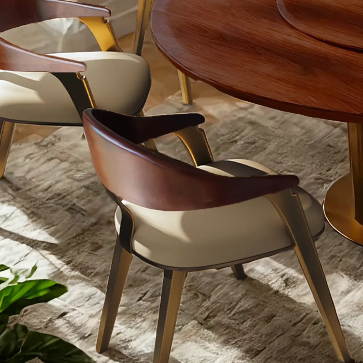 A low curved back wraps around to form integrated armrests, providing essential lumbar support during long meals. This supportive design helps maintain good posture whether you are enjoying dinner at home or hosting clients in a professional lounge.