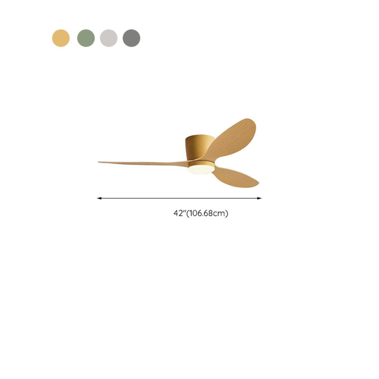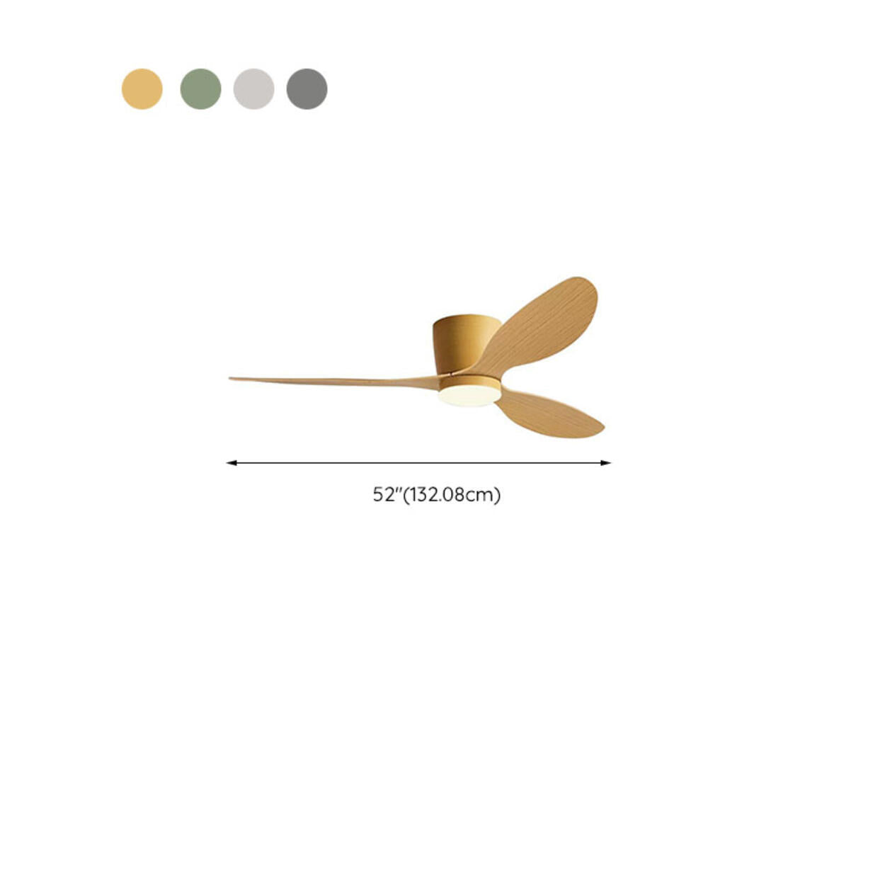 Modern Flush Mount Wood Grain Blades Ceiling Fan Light