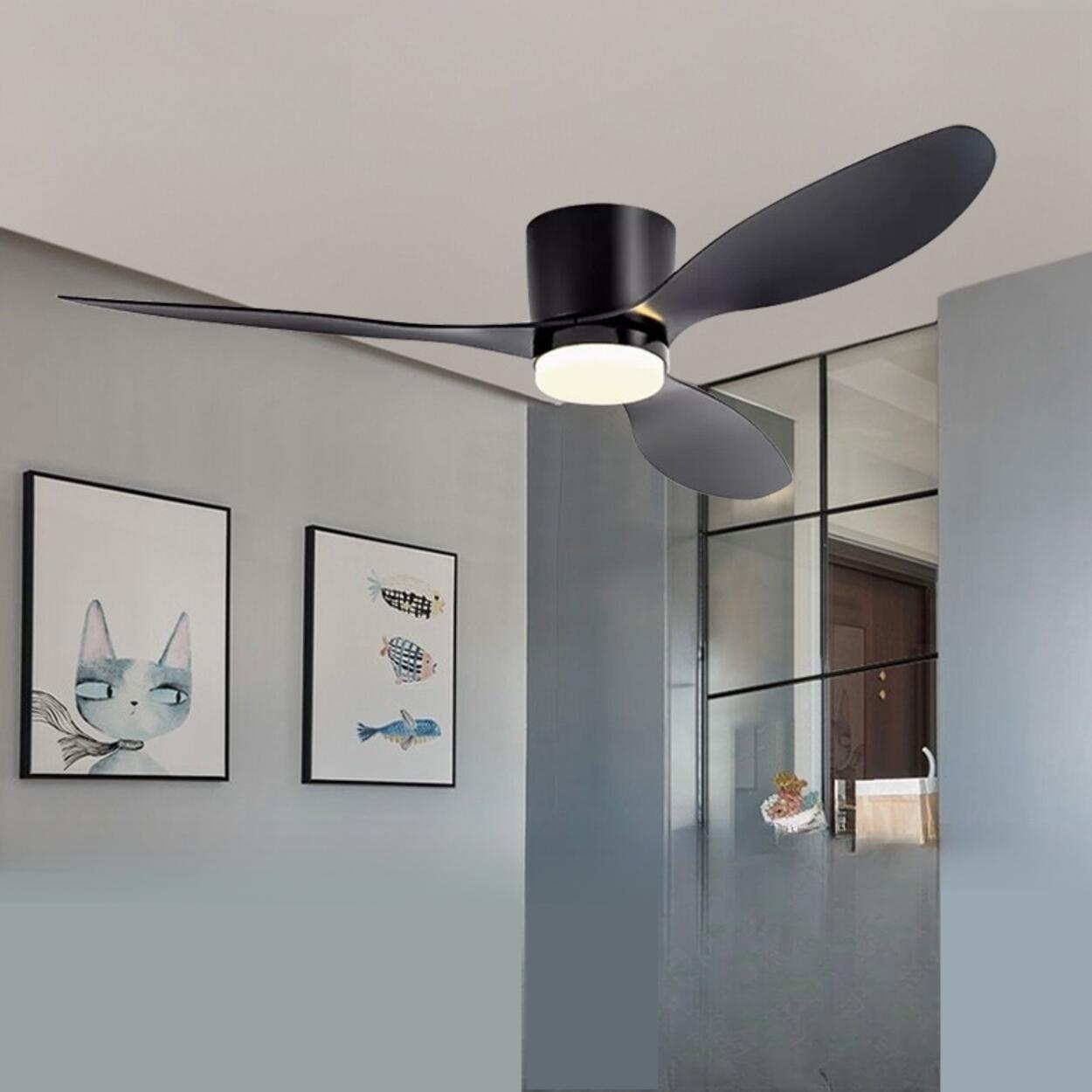 Modern Flush Mount Wood Grain Blades Ceiling Fan Light - Remote Control Stepless Dimming / 42" / Black is backordered and will ship as soon as it is back in stock.
