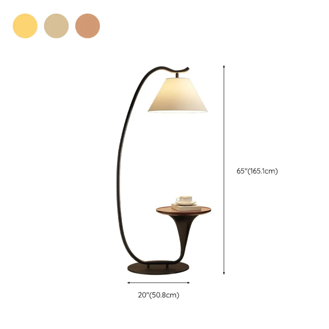 Modern Foot Switch Fabric Cone Arc Floor Lamp with Wood Table - Wood Color is backordered and will ship as soon as it is back in stock.