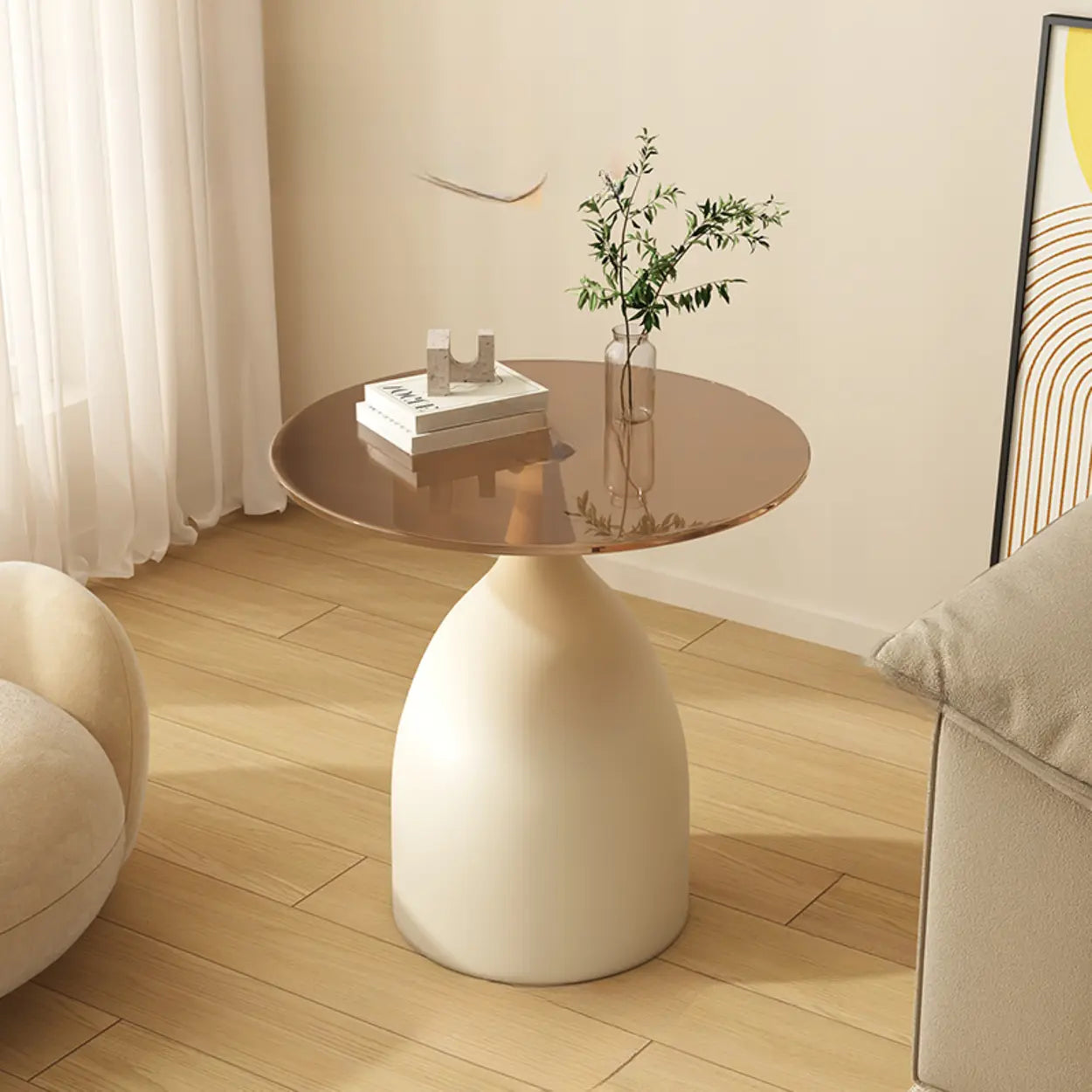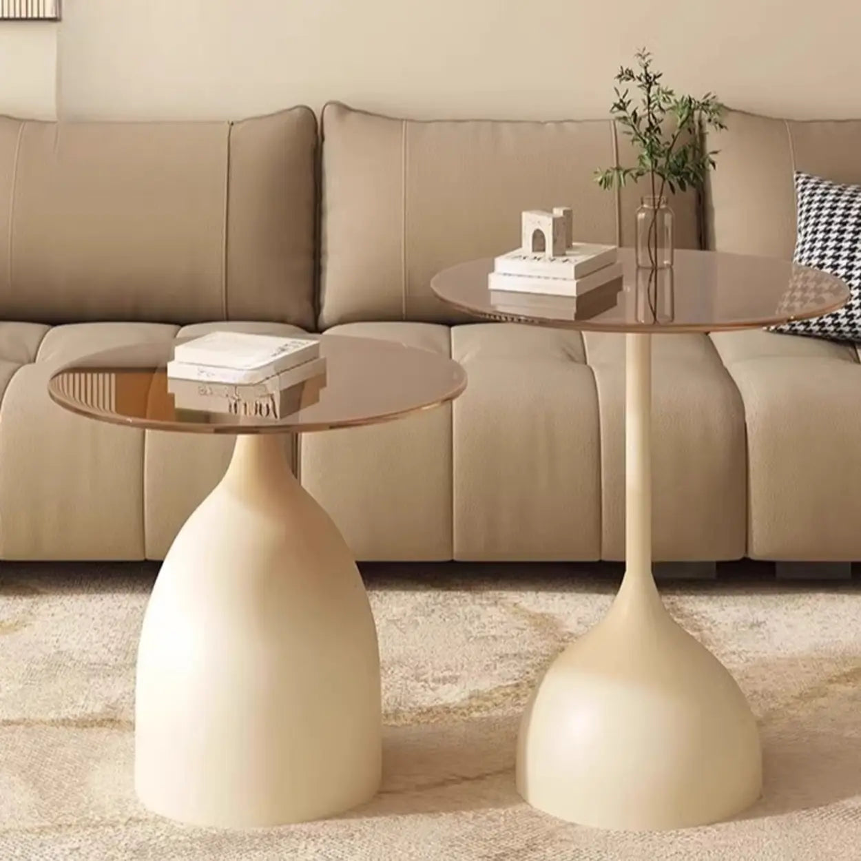 This round side table features a smooth, bell-shaped base and a warm, transparent glass top that adds brightness and elegance. Its minimalist design suits living rooms, bedrooms, or studies. Available in multiple sizes, it works well as a side table, nightstand, or accent piece. The rounded edges offer added safety and easy cleaning.