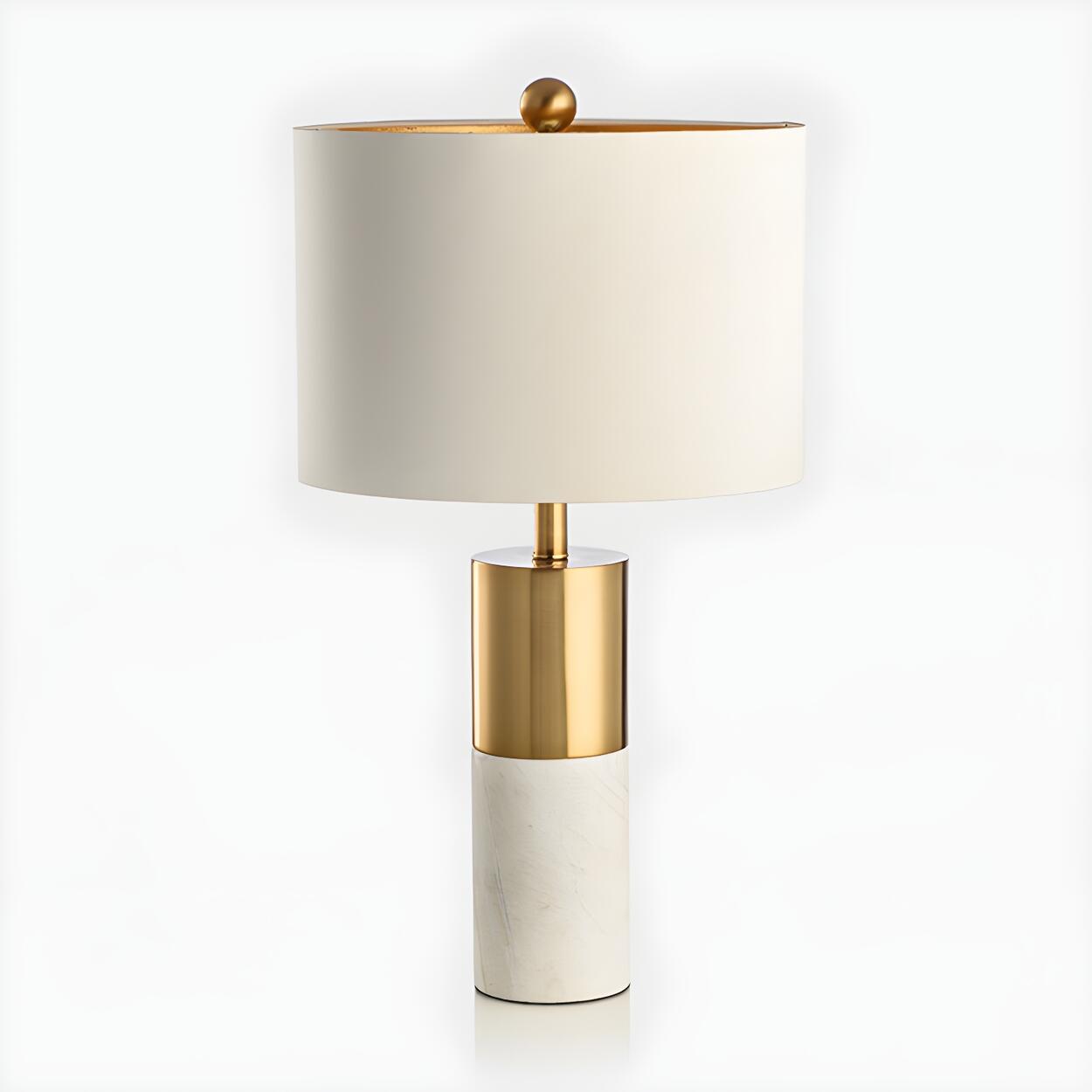 Modern Gold Accent Fabric Cylinder Marble Table Lamp