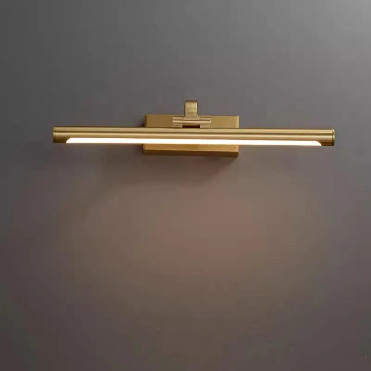 This modern minimalist style gold linear bathroom wall lamp is made of high-quality metal material, with an elegant appearance and smooth lines, adding a high-end texture to your bathroom space. Equipped with high-efficiency LED lamp beads, the lighting is uniform and energy-saving and environmentally friendly. It is very suitable for installation above the bathroom mirror. It not only provides sufficient lighting, but also effectively improves the daily life experience such as washing and makeup. The 24-inch large size design meets the lighting needs of large areas. Its metal surface is finely polished, corrosion-resistant and rust-proof, durable and easy to clean and maintain. The perfect combination of stylish shape and practical performance is an ideal choice for modern family bathrooms, dressing rooms, restrooms and other places.