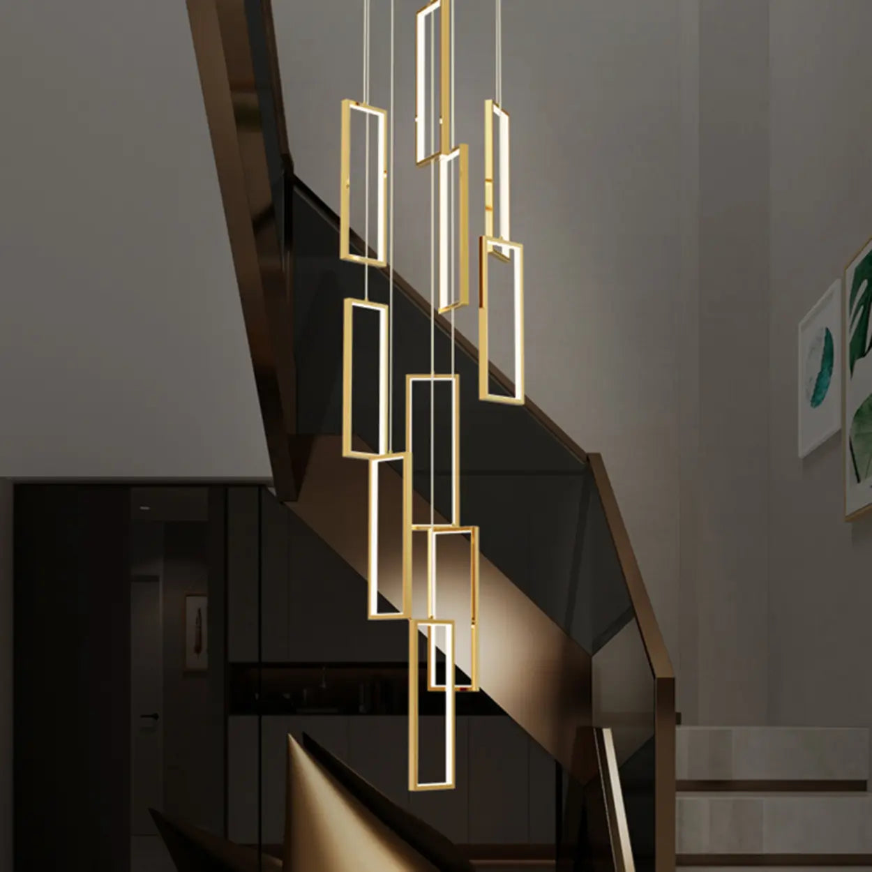 Modern Gold Rectangular Frame Kitchen Island Pendant Light