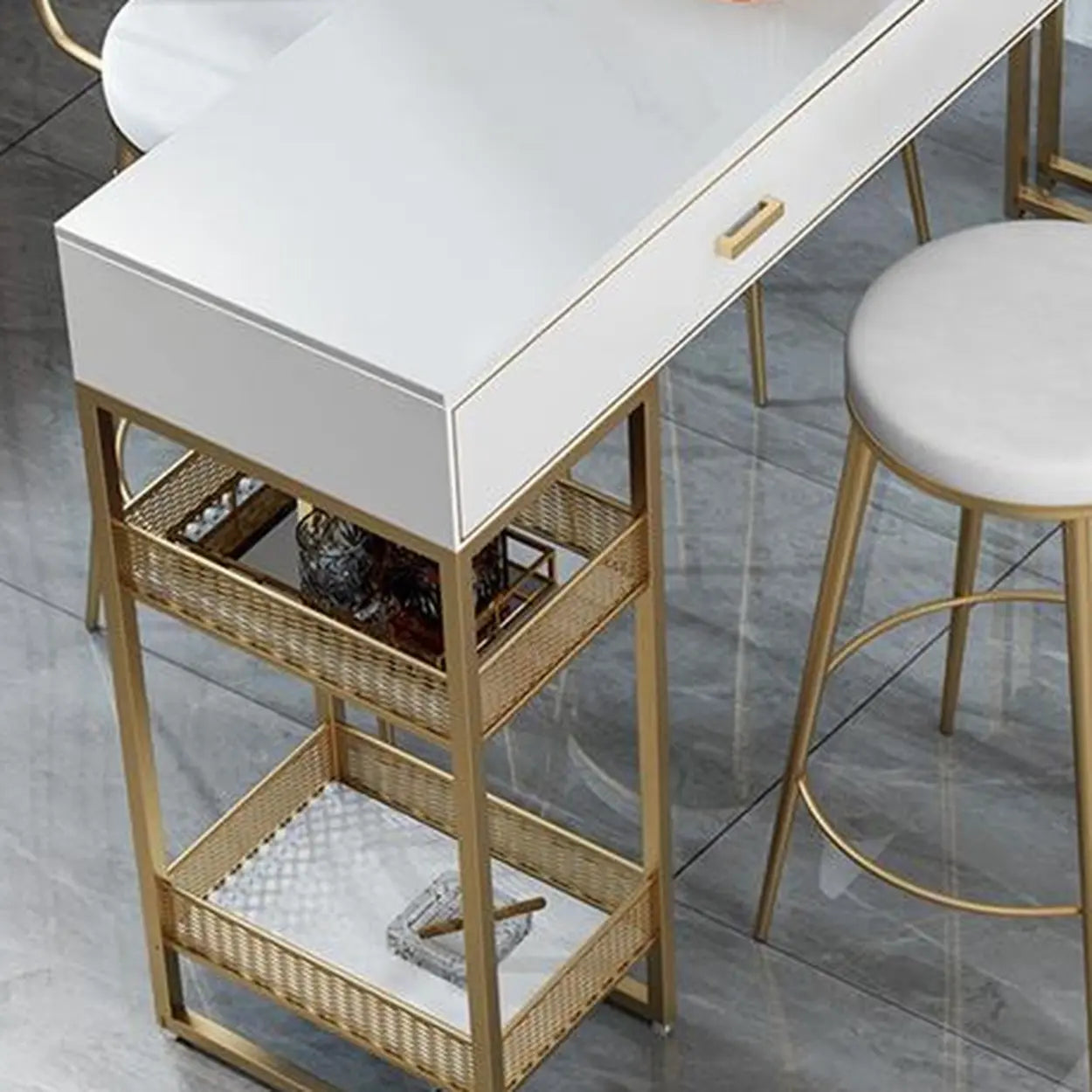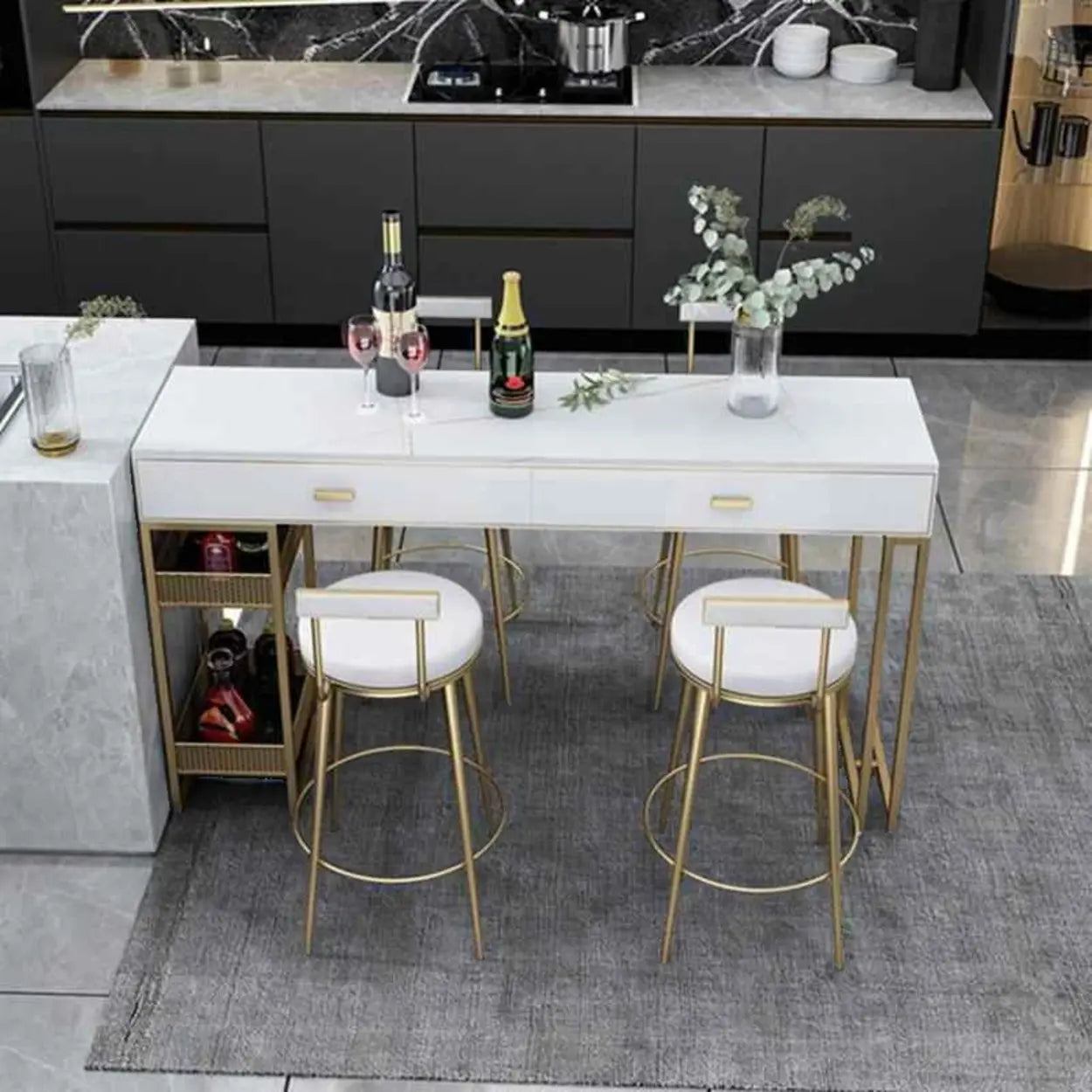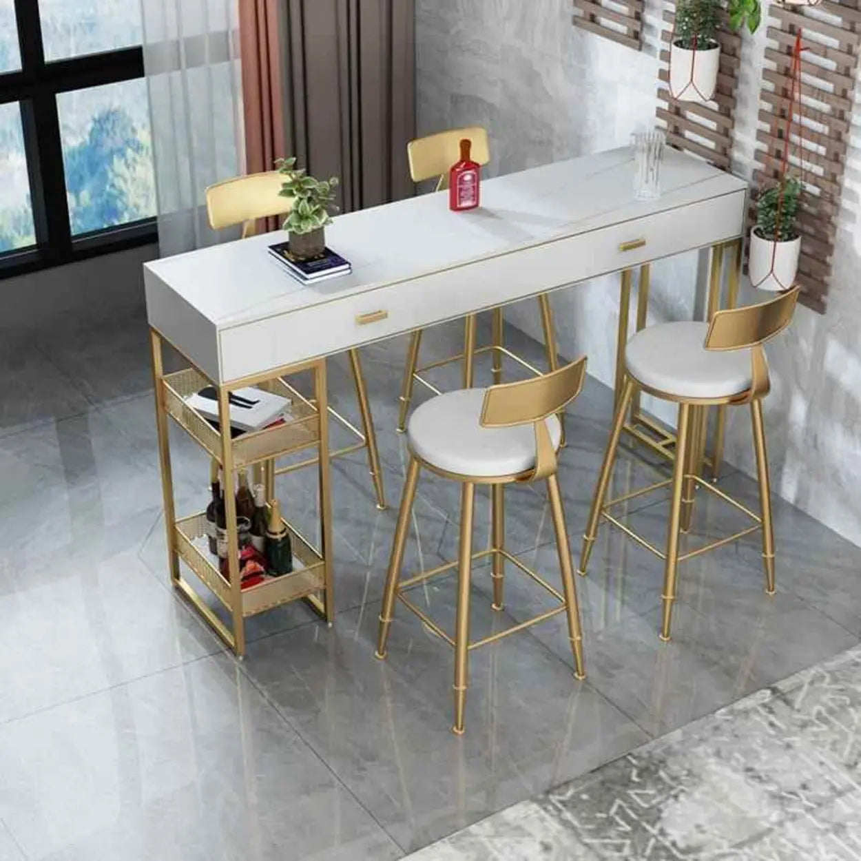 Modern Home Bar Height Table with Storage Shelves