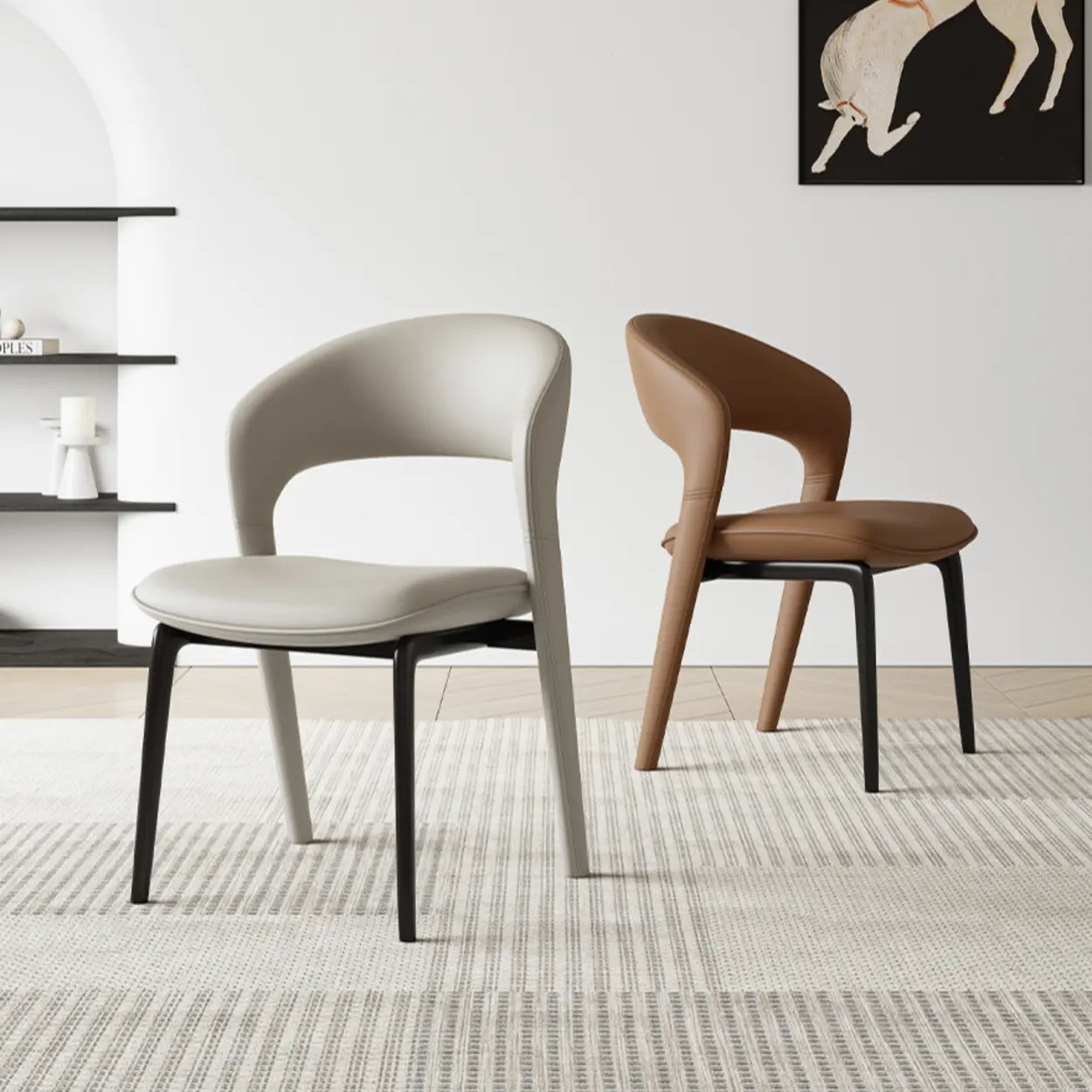 Modern Leather Ergonomic Curved Back Upholstered Dining Chair
