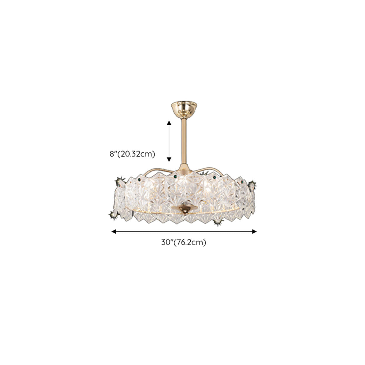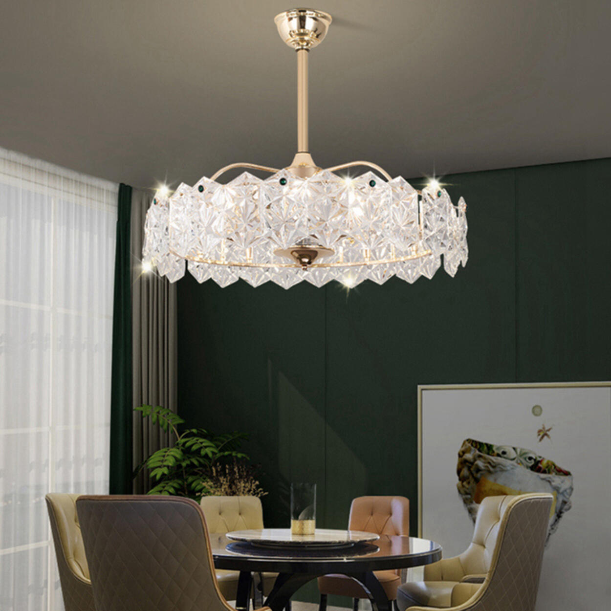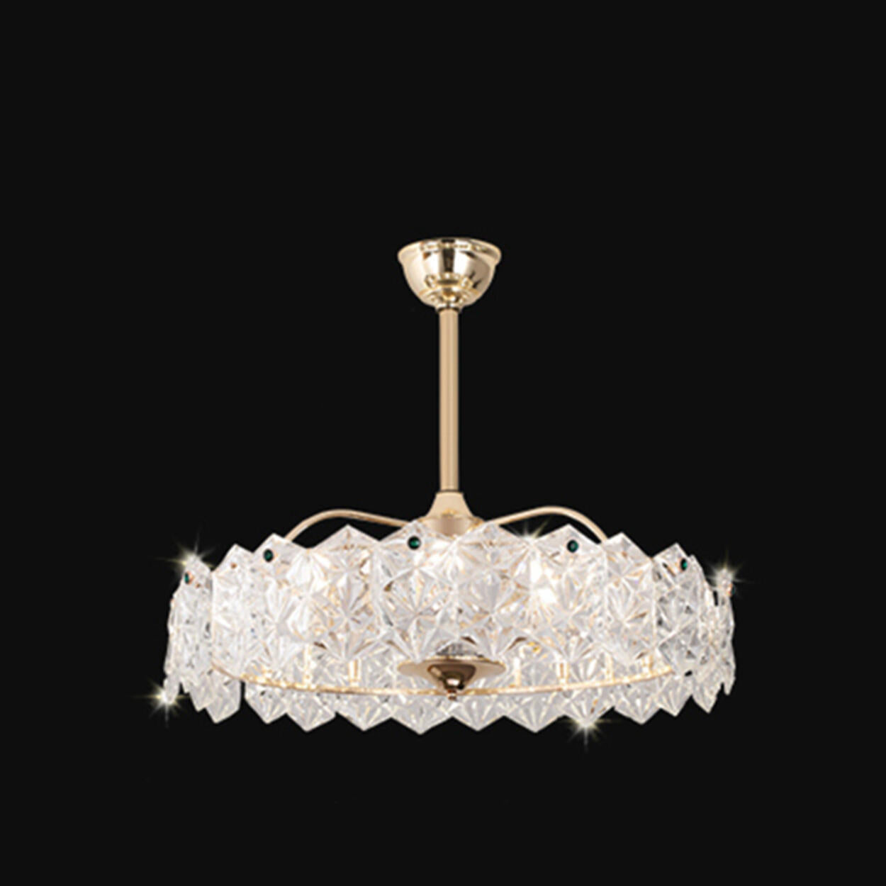 This modern round ceiling fan light is the perfect combination of luxury and practicality. Designed with high-quality crystal glass and elegant gold accents, it not only provides comfortable air circulation but also adds a noble decorative charm to your home. It also performs well in energy saving, and you can enjoy a unique lighting and air conditioning experience with just the touch of a switch. Choose this perfect home accessory now to improve your quality of life and make every night full of light.