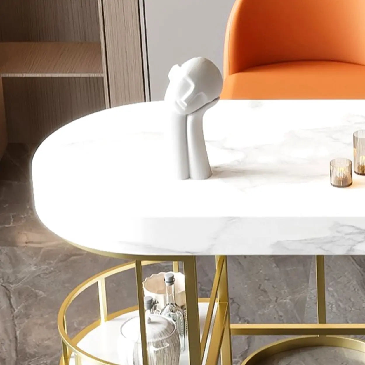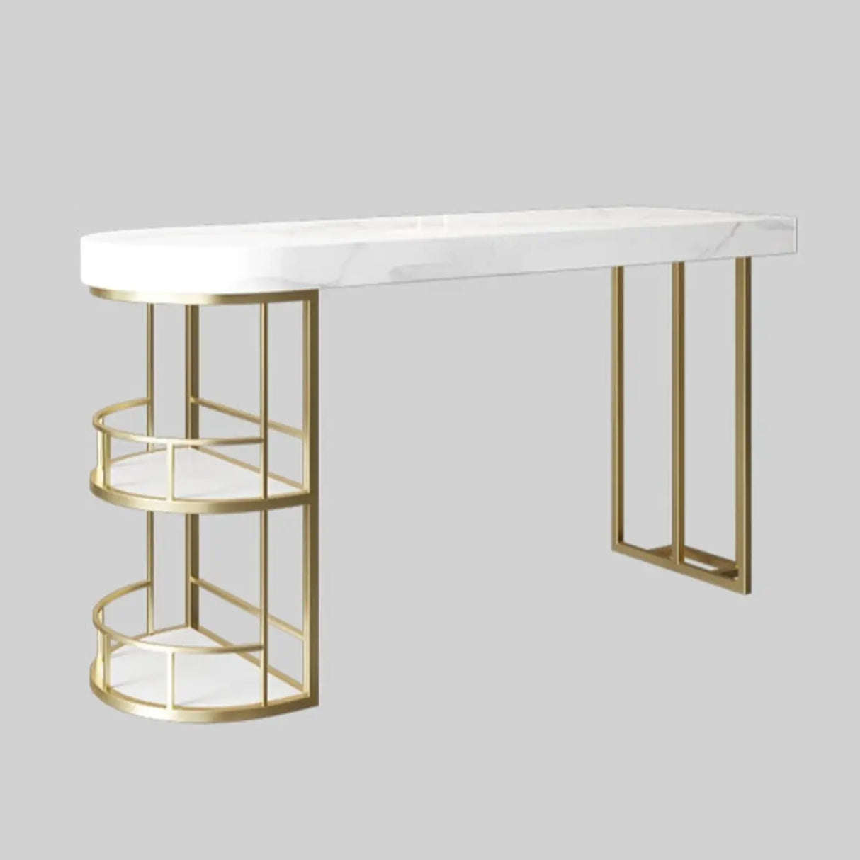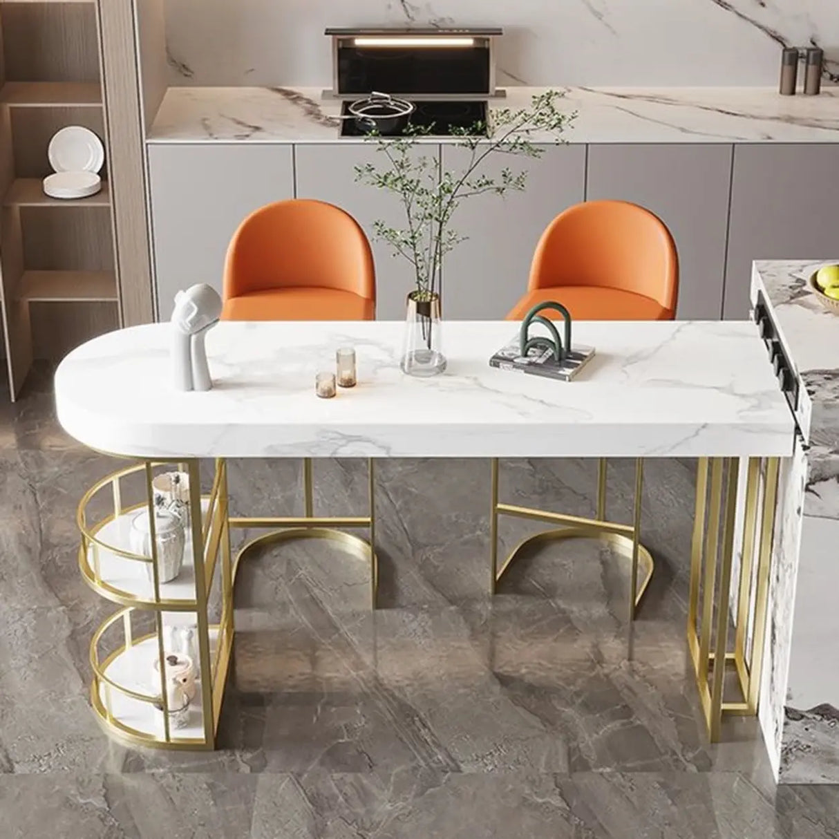 Modern Marble Kitchen Island Table with Gold & Storage Shelves