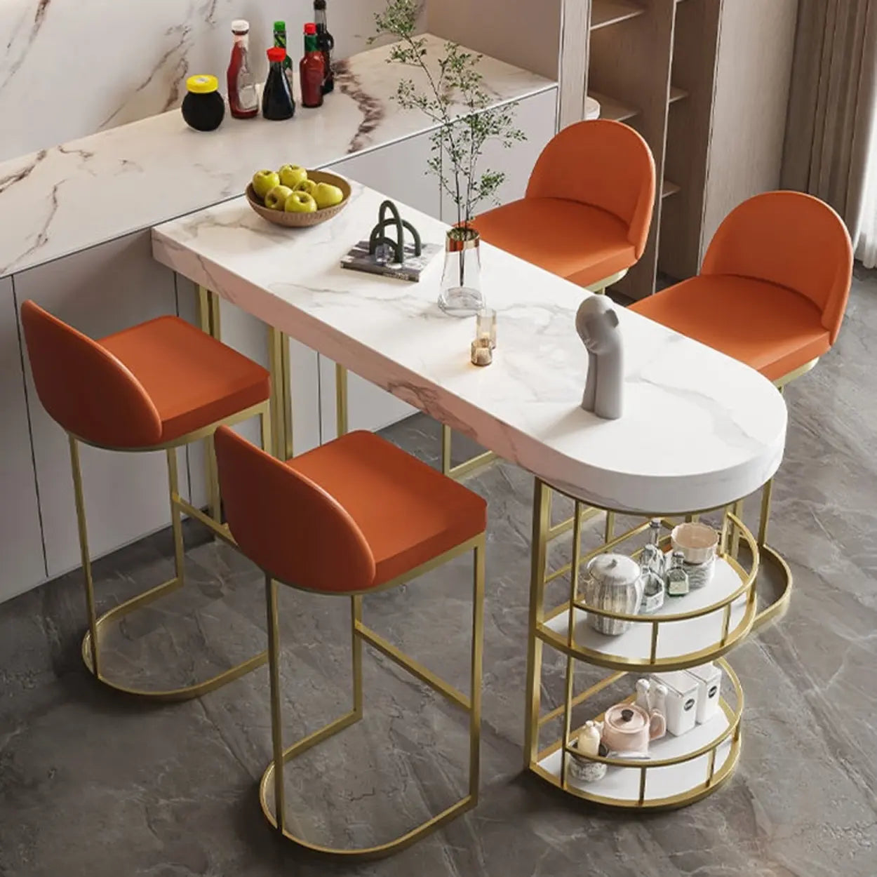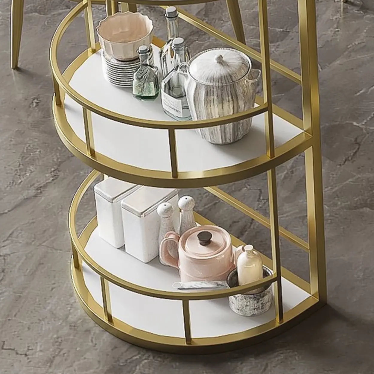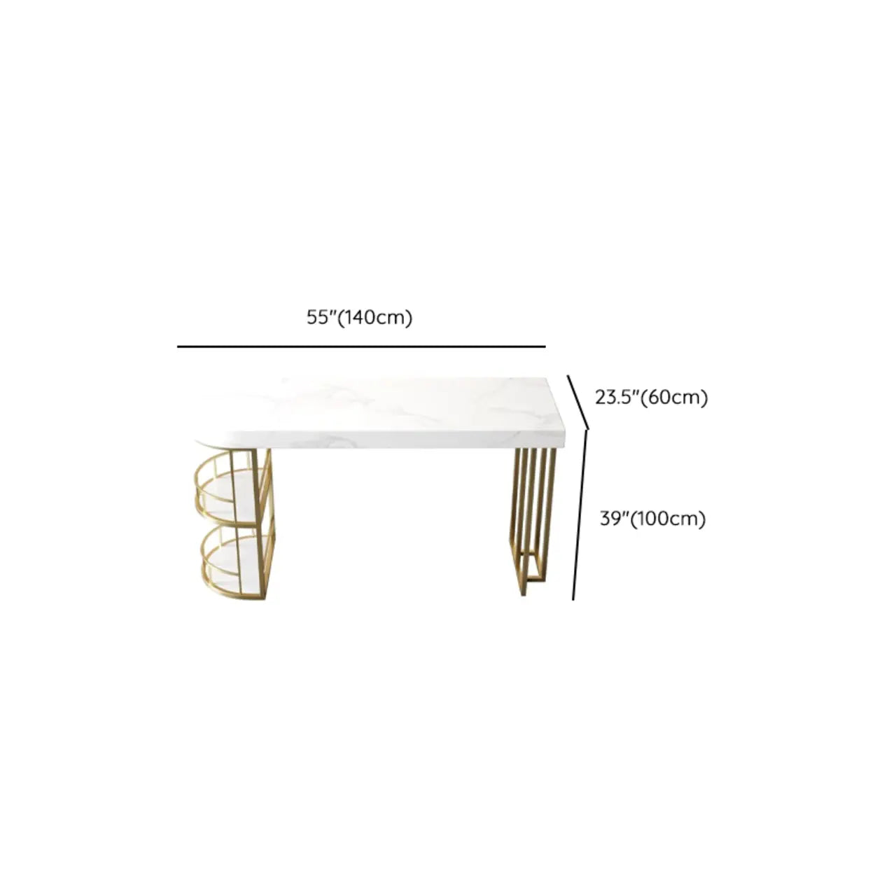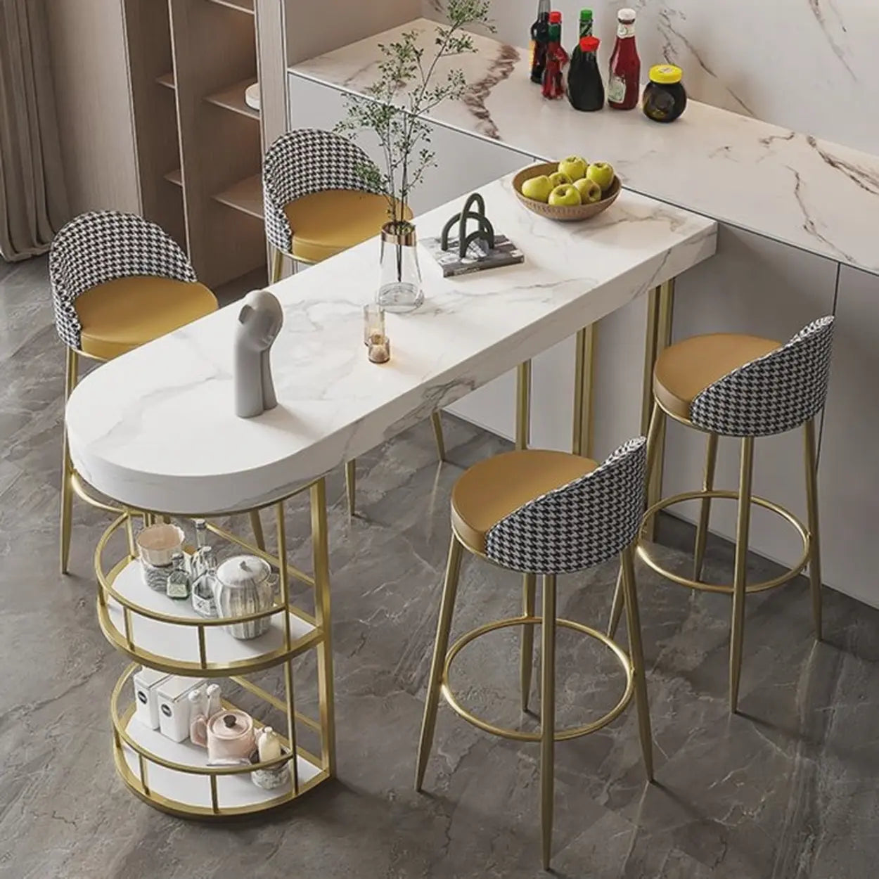 Modern Marble Kitchen Island Table with Gold & Storage Shelves