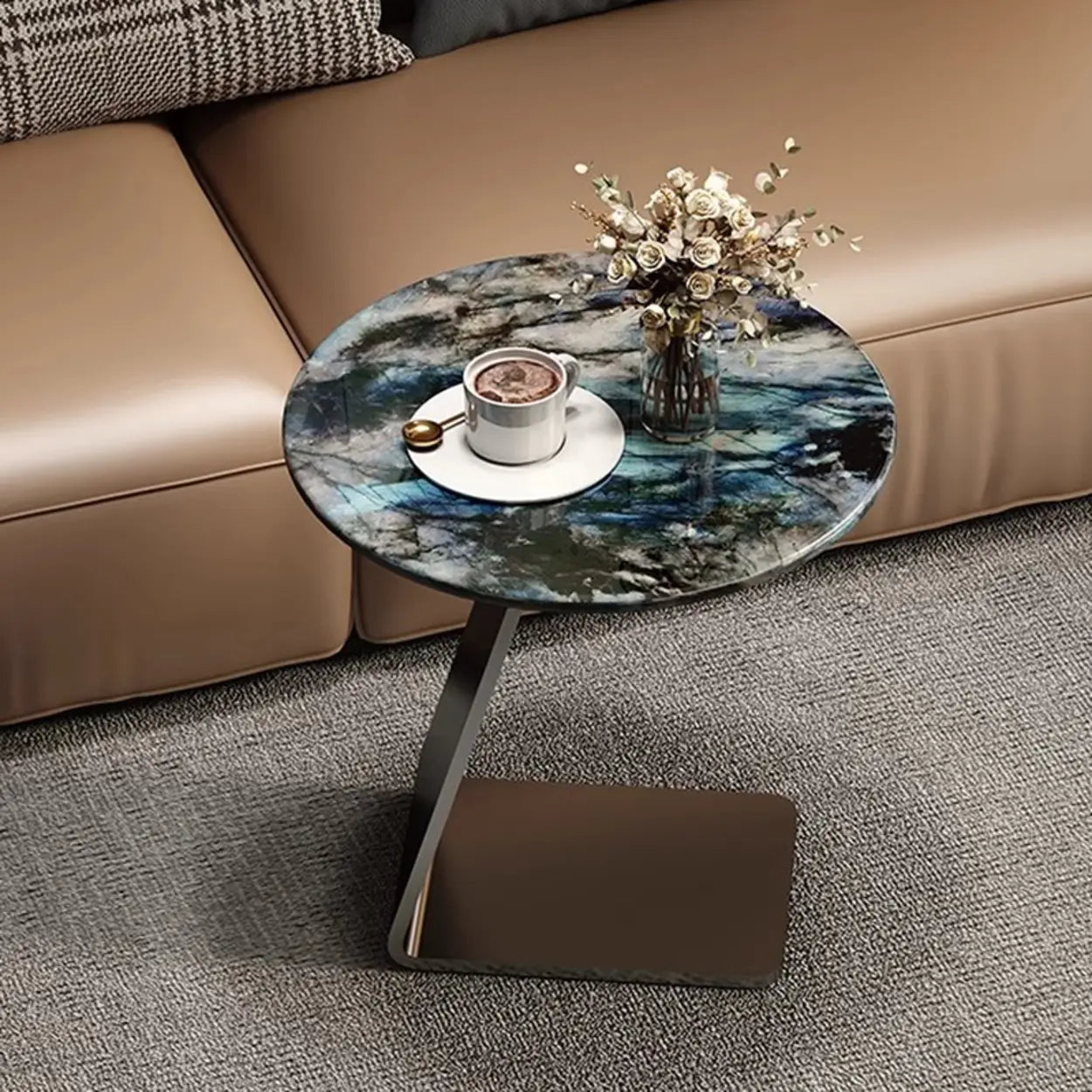 Modern Marble-Top C Table Side Table with Metal Base