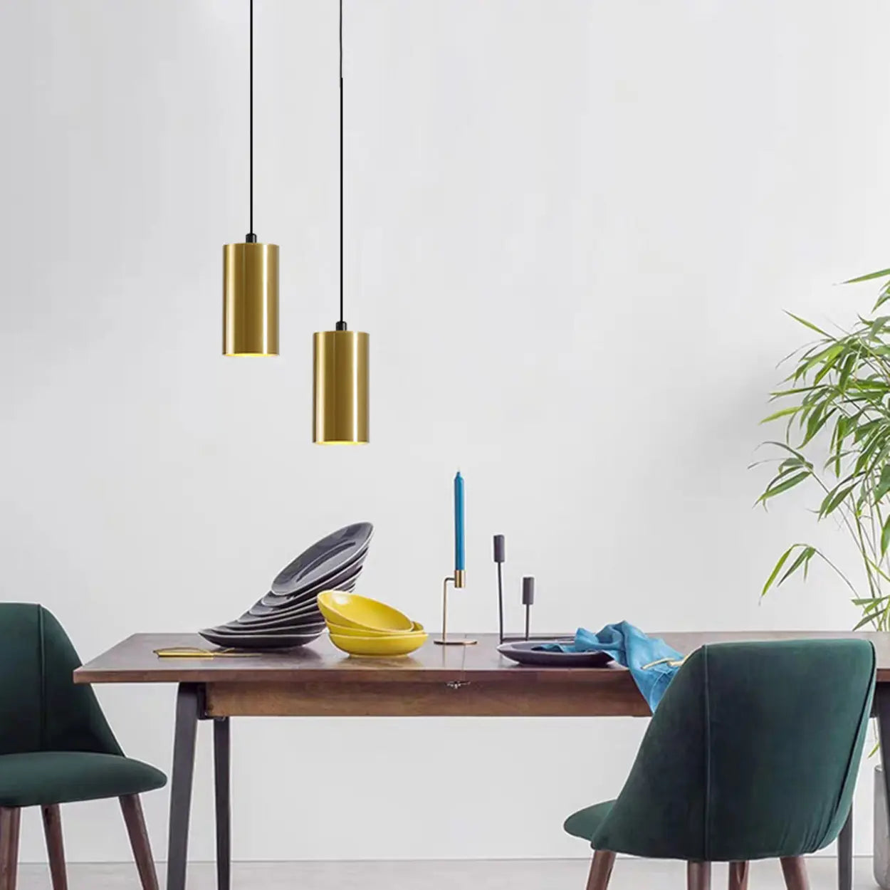 This modern and simple cylindrical pendant light is made of high-quality alloy, perfectly combining fashion and functionality. Its golden appearance adds a sense of luxury to the interior, making it an ideal choice for modern spaces such as restaurants or kitchens. It provides bright lighting effects, a perfect combination of practicality and artistry.
